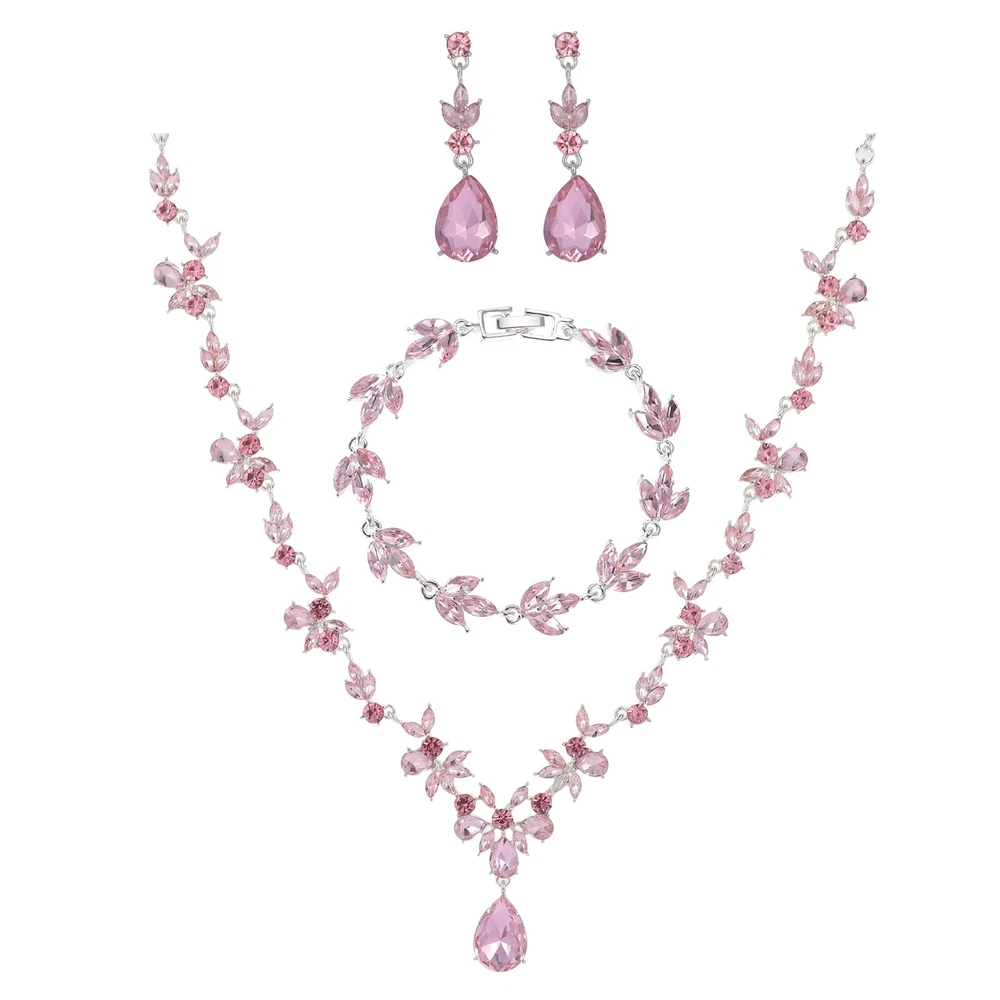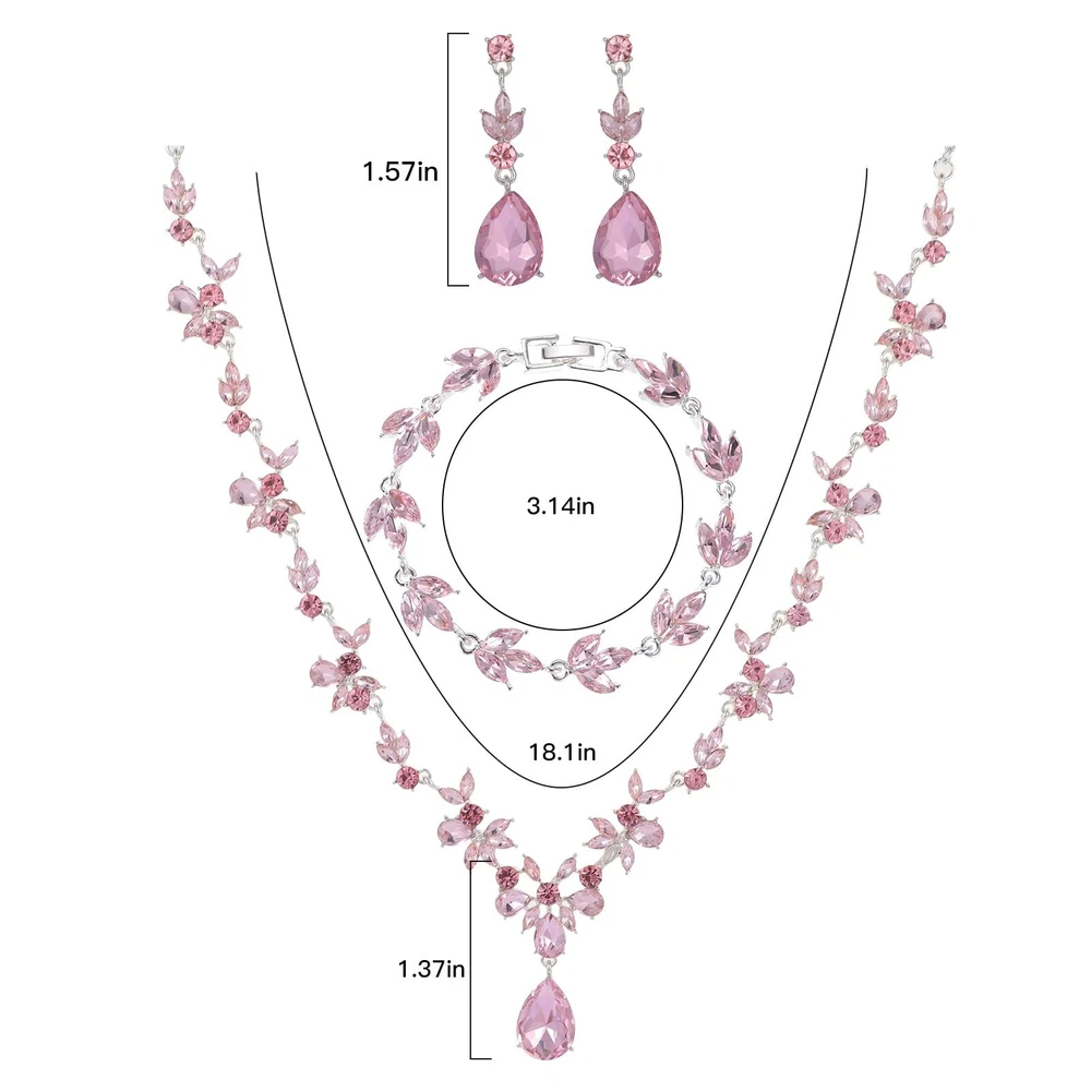 Kamirola Bridal Jewelry Set, Jewelry Set for Women, Necklace Dangle Earrings Bracelet Set, White Gold Plated Jewelry Set Product Details Color: Silver Pink Brand: Kamirola MPN: Does not apply UPC: Does not apply EAN: Does not apply Department : womens Date First Available : July 25, 2024 Manufacturer : Kamirola Brand, Seller, or Collection Name: Kamirola Metal: Zinc Material: Zinc Gem Type: Crystal Clasp: Lobster Clasp Number of stones: 6 Bridal Jewelry Set