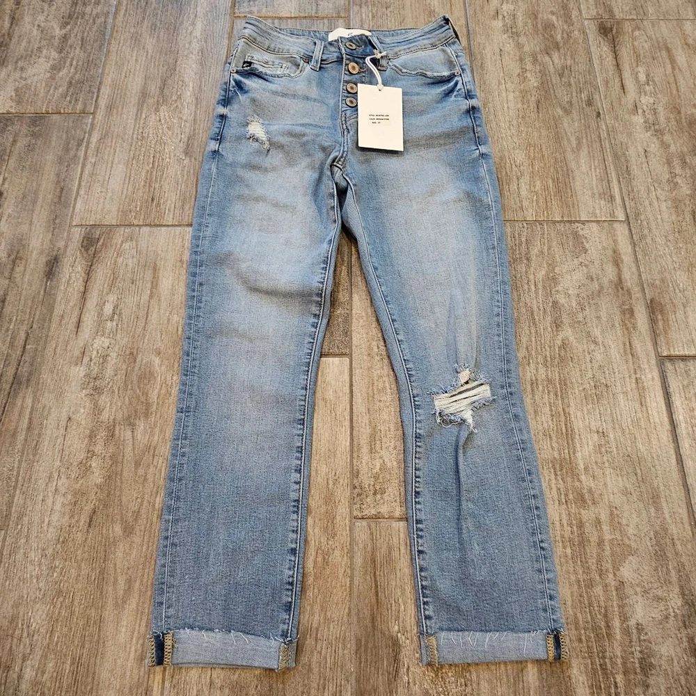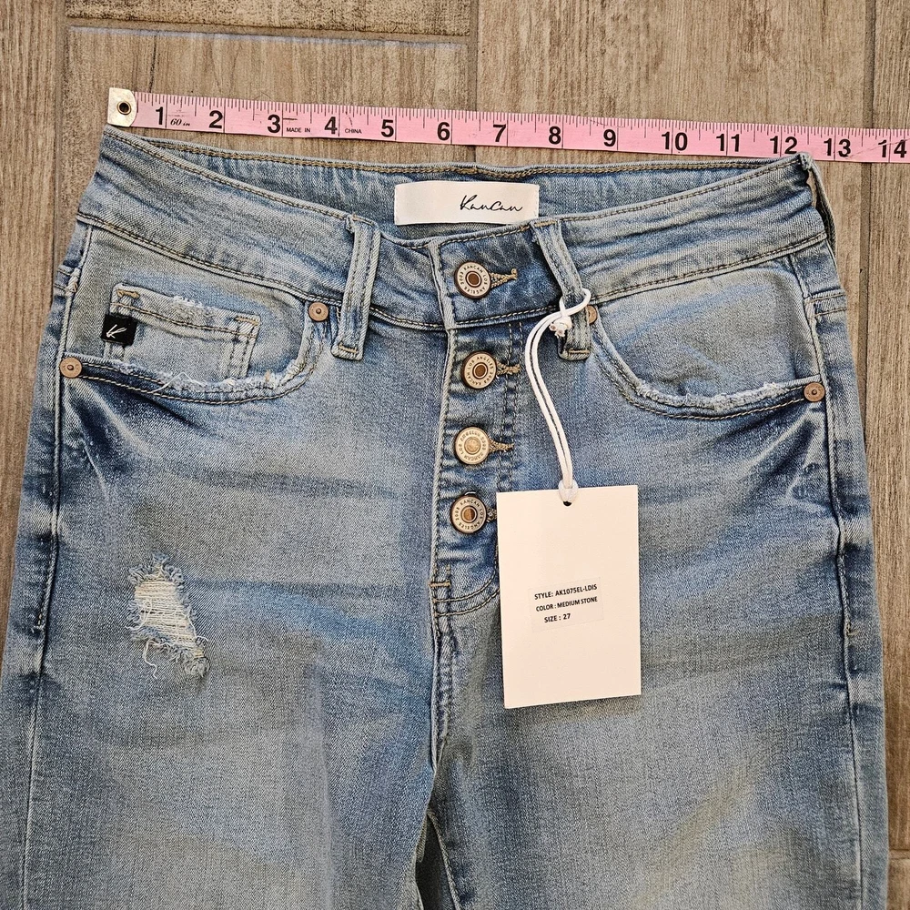 Kancan Jeans Womens 27 Cuffed Crop Capri Light Wash Distressed Button Fly NEW Measurements are included in the photos New with tags Condition Bundle for a discount or send an offer
