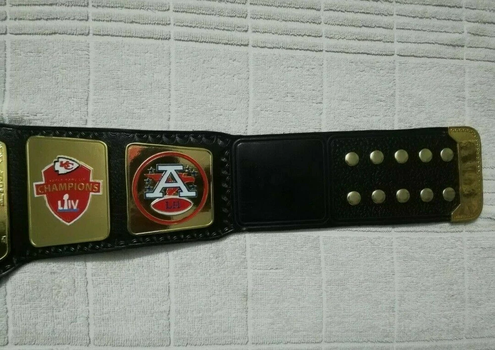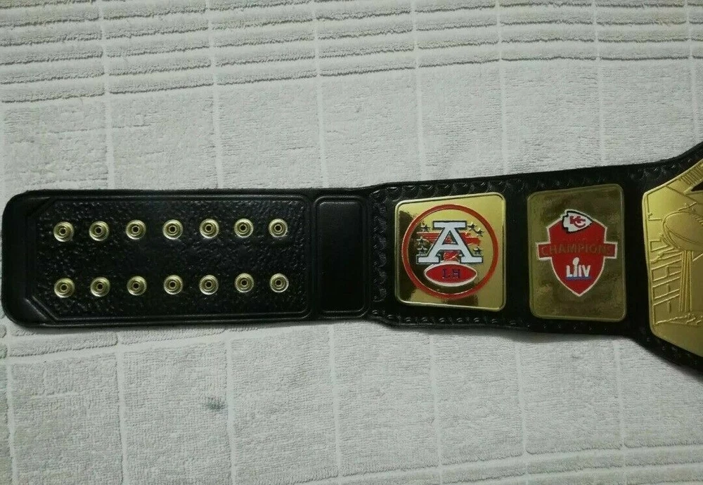Welcome to our shop ------------------------------------------- We are specialist in manufacturing handmade products:: Our wide range of products include: >>>>Championship Belts WWE | WWF | AEW | UFC | WBC | WCW Product Description ** Kansas City Chiefs championship belt *** Plate Metal: Brass (Zinc available on request with additional cost) Strap: 100% Leather Largest Waist Size: Fits upto 46'' Belt Length: ~50" Weight: 6.17 lbs | 2.81 Kg Plate Thickness: 2mm (4mm Version available on demand with additional cost) ::The belt is well crafted and manufactured to meet the quality demands of fans:: Get your hands on this marvelous piece now! Note: If you need further details kindly inbox us, we will try to be as responsive as possible. ------------------------------------------- Return Policy: Generally we don't have much complains on our products and we make sure to 100% satisfy our clients. We send the product in well Bubble Wrapped packaging so there is highly unlike chance of getting damaged item. In case there is a damage, we will try to give partial refund or you can ask for full refund within 30 days after returning the belt to origin. NOTE: 1. If you have placed the order by mistake or you have purchased a wrong item then we are not going to refund that. 2. Buyer will pay the shipping fee of returning the belt. ------------------------------------------- Happy Shopping! :)