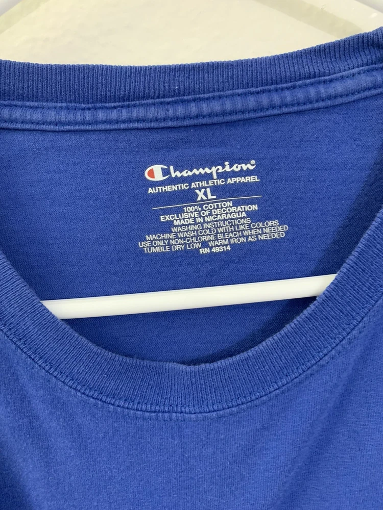 Show your support for the Kansas Jayhawks with this Champion XL blue shirt. Perfect for football season, this officially licensed fan apparel is a must-have for any dedicated fan. Featuring the team's logo and colors, this shirt is a great addition to your collection. It's made for men and comes in size XL, making it a comfortable fit. The shirt is from the brand Champion, known for their high-quality sportswear. Wear it to the game or just around town to show your team pride.