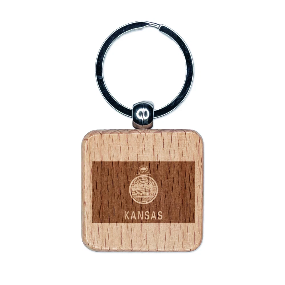 Kansas State Flag Engraved Wood Square Keychain Tag Charm