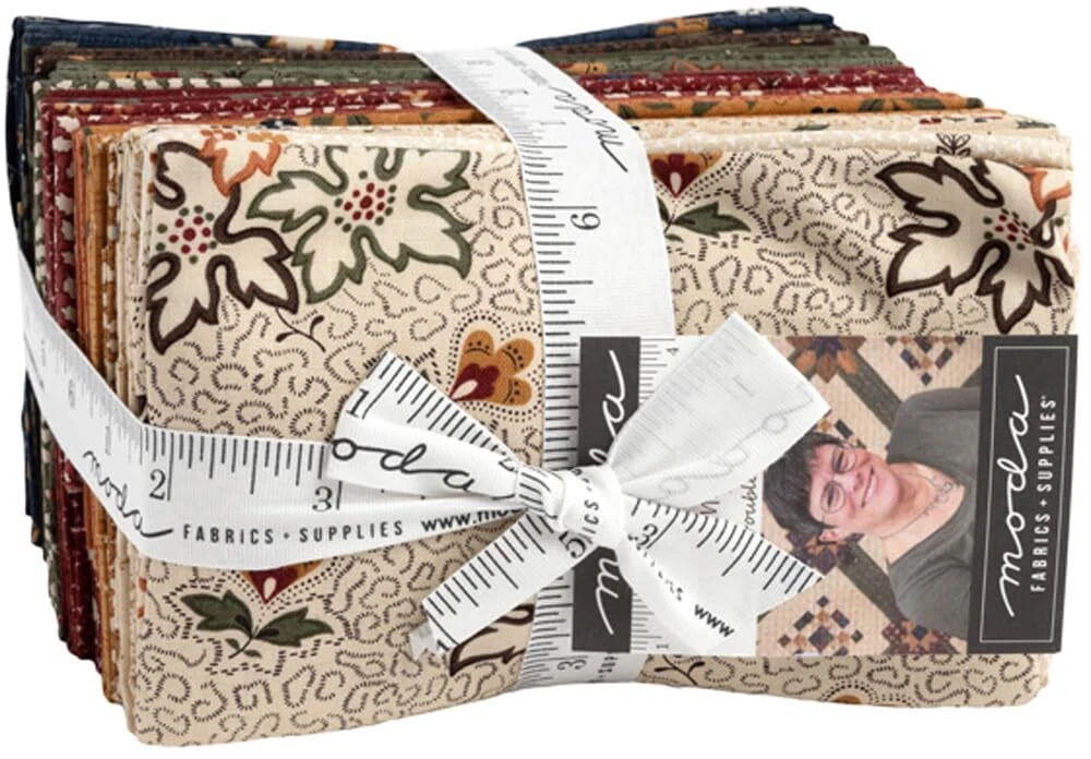 Fabric bundle of 40 9-inch by 22-inch fat eighths from the Fluttering Leaves collection by designer Kansas Troubles for . I love the changing seasons in Kansas, especially fall. It's the time of year I add layers to my home decor with soft, comfy quilts, runners and pillows. Fluttering Leaves features a fun twist on a fall print with a sprinkling of florals, leaves and geometrics. All of this in my classic KT palette to create projects with rich autumn vibes to cozy up your home for the season. -- Lynne Fluttering Leaves collection from Designed by Kansas Troubles Fat Eighths Bundle includes 40 9-inch by 22-inch fat eighths 100% Cotton; premium quilt shop quality fabric