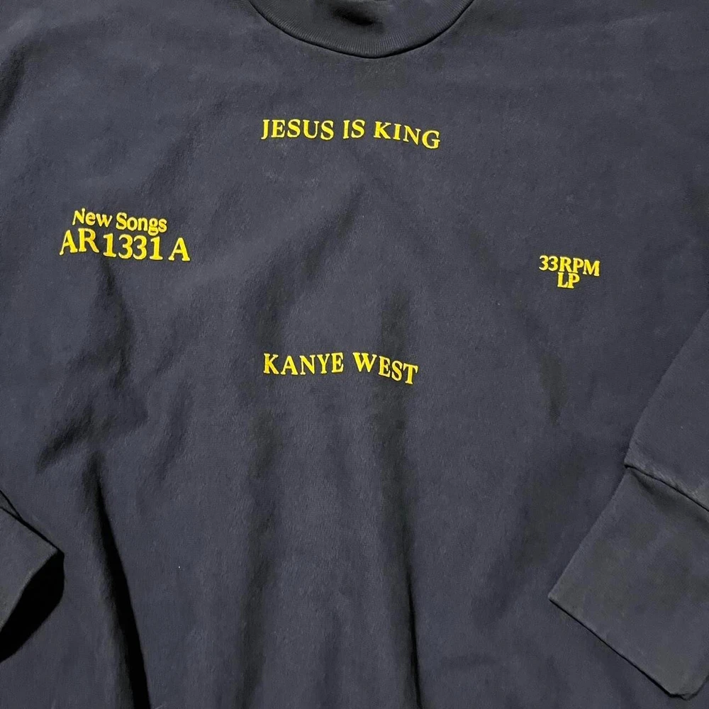 Elevate your streetwear game with this rare Kanye West Jesus is king Yeezy Crewneck in size XL. Made from heavyweight cotton canvas, this pullover sweatshirt features a solid black color with a graphic print of an angel on the front. The crew neck and long sleeves make it perfect for any season, whether it's winter, summer, fall, or spring. This vintage sweatshirt is a must-have for any hip hop fan and is sure to turn heads with its unique design. The Yeezy brand is known for its high-quality clothing, and this sweatshirt is no exception. Don't miss out on the opportunity to add this rare piece to your collection.