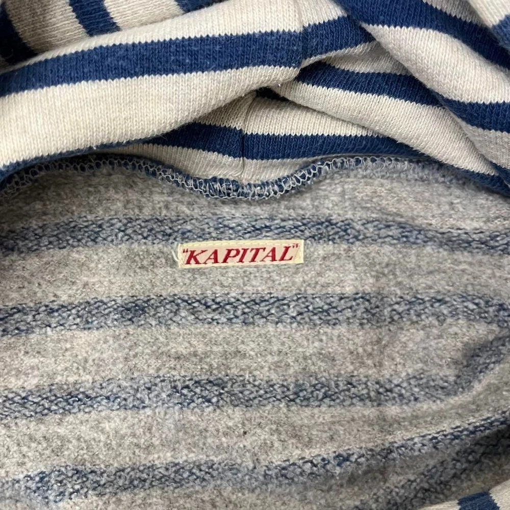 Kapital Parka Hoodie Sweatshirt Border Cotton Navy Gray Men Size 2 Used