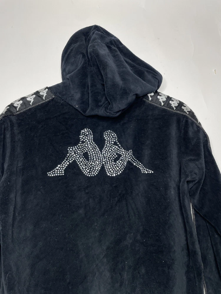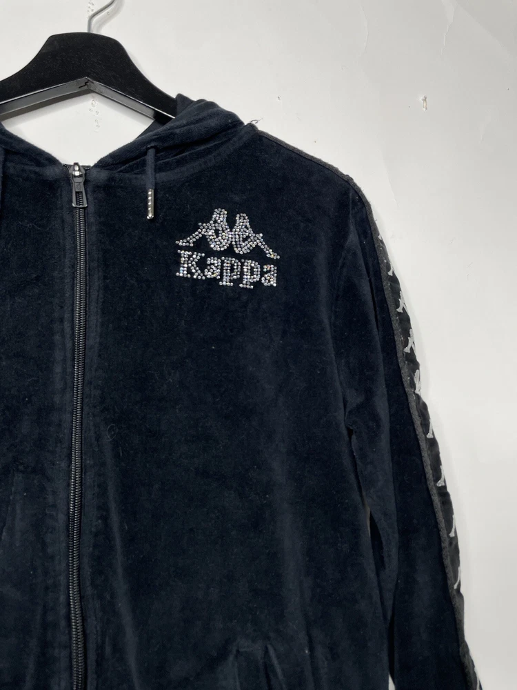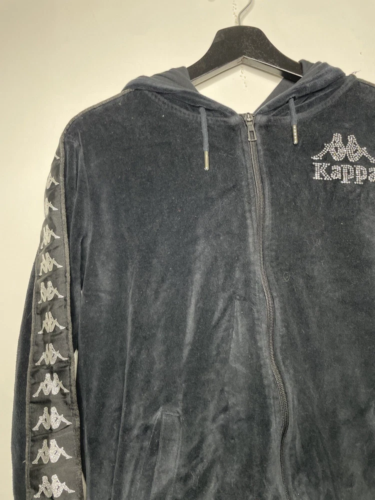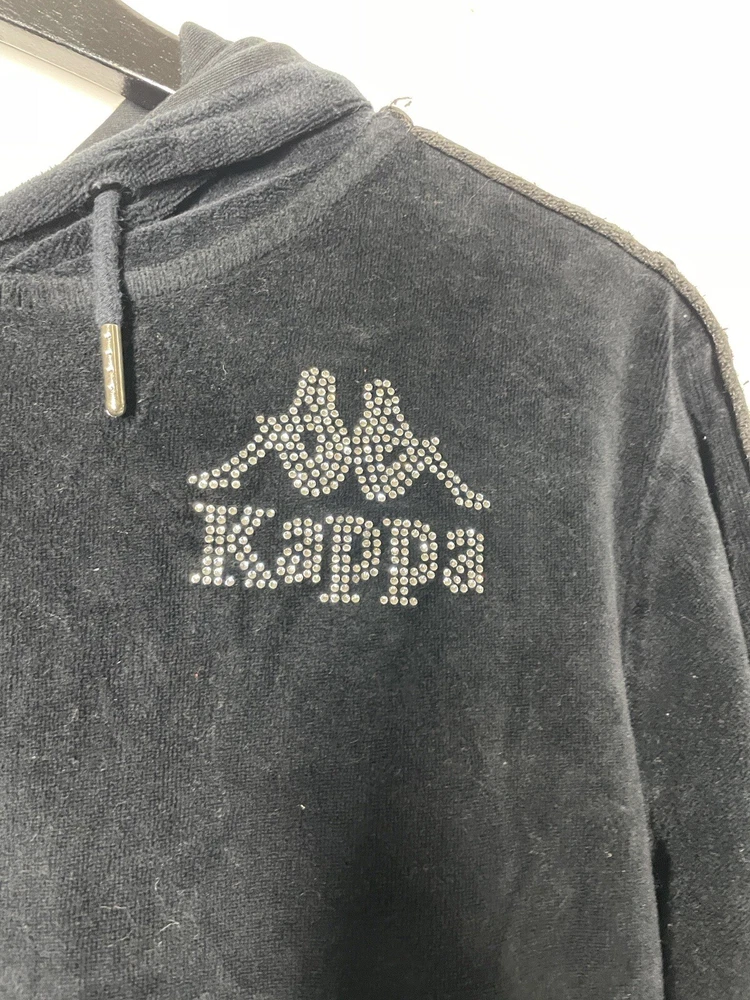 Kappa Full Zip Hoodie Size Small Velour Black Logo Y2K