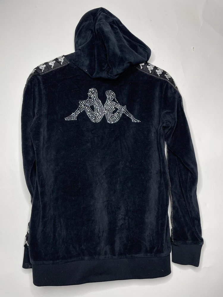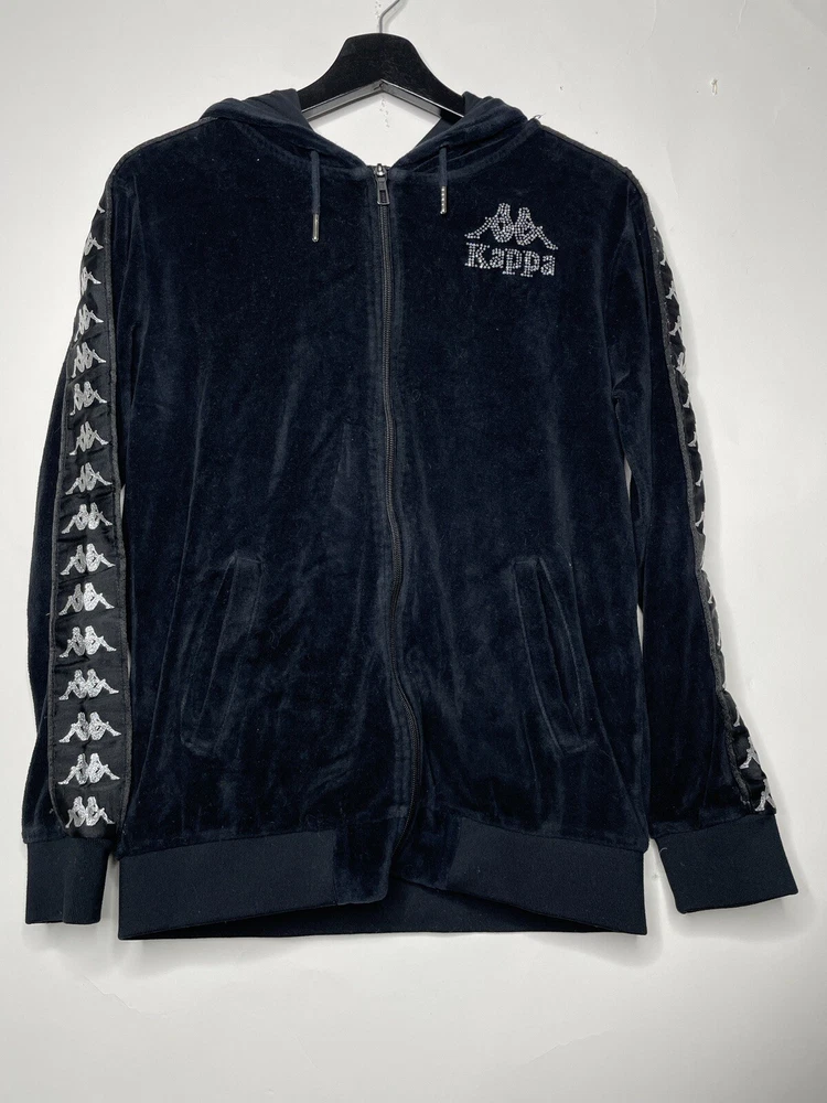 Style: Full Zip Accents: Logo Brand: Kappa Type: Hoodie Occasion: Activewear Color: Black Size Type: Regular Size: S Closure: Zip Department: Women Material: Polyester Theme: 90s Sleeve Length: Long Sleeve Features: Full Zip Neckline: Collared Pattern: Solid Fabric Type: Velour
