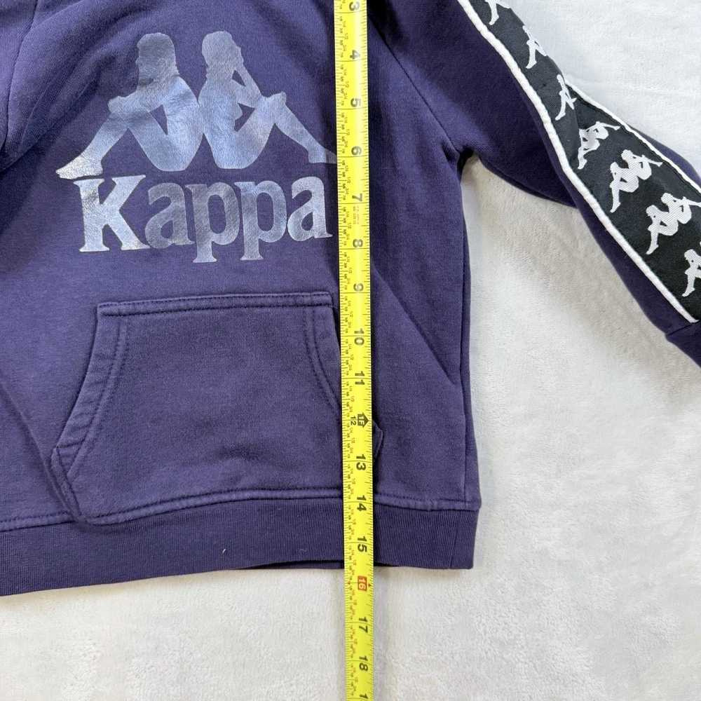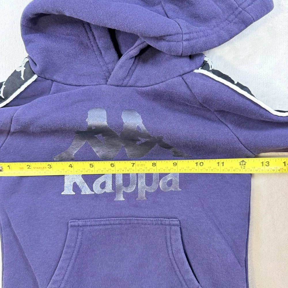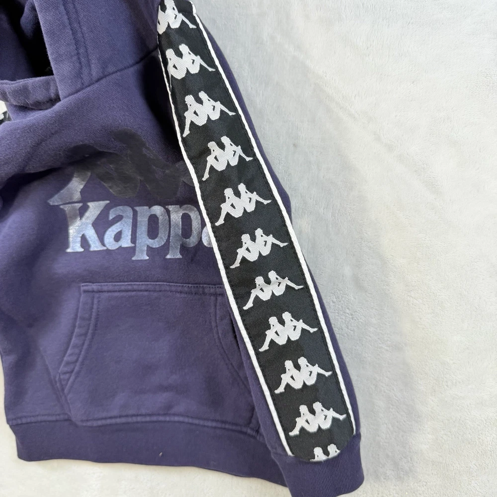 The Kappa Pullover Hoodie Sweatshirt in red is perfect for kids aged 3 years. This stylish hoodie features a reflective logo on the sides, adding a safety element to your child's wardrobe. With long sleeves and a pullover closure, this hoodie is both practical and fashionable for young boys. Made by the well-known brand Kappa, you can trust the quality and design of this sweatshirt. Perfect for active kids who want to stay comfortable and stylish.