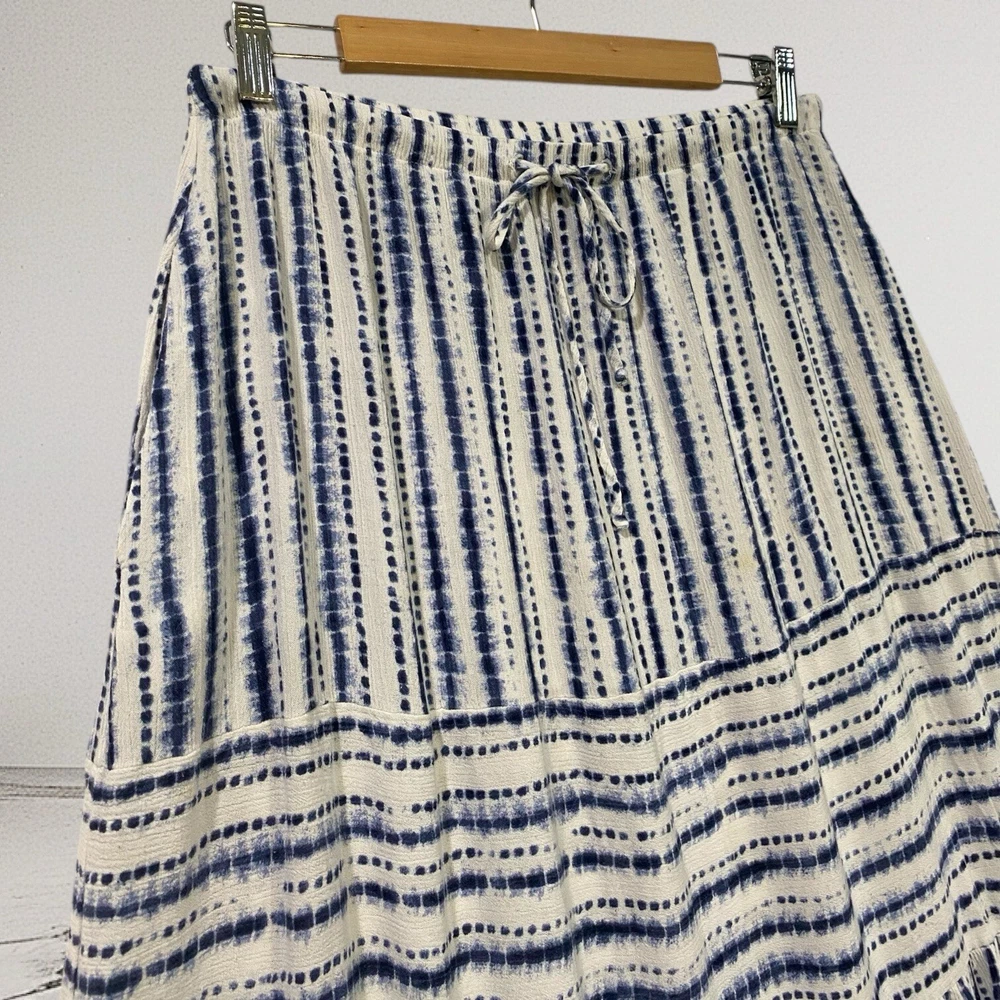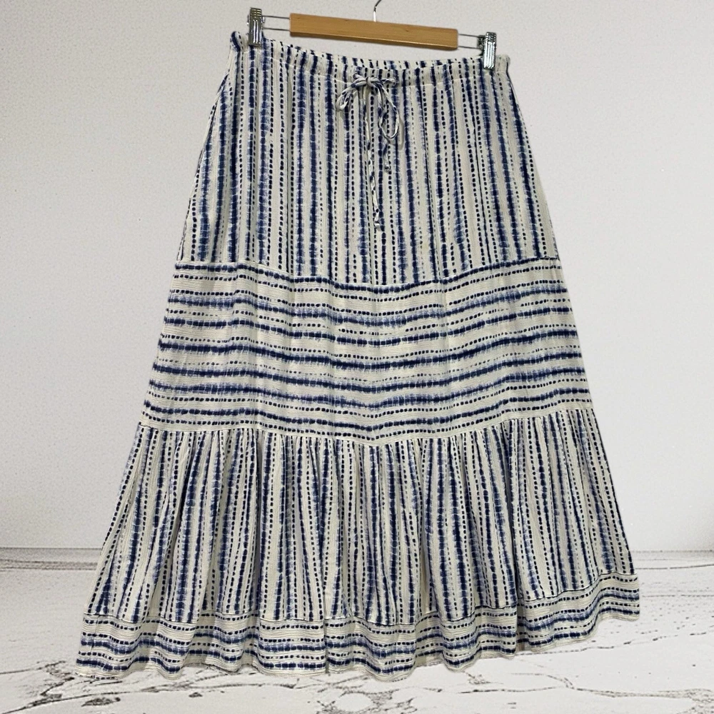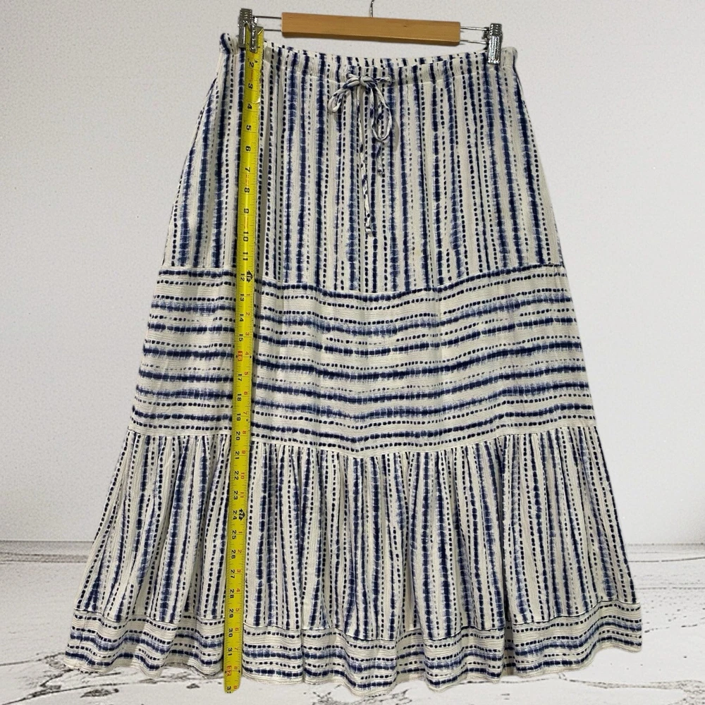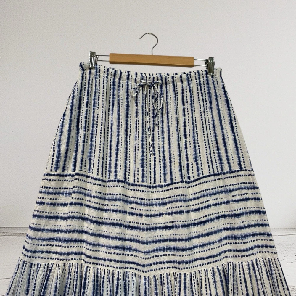 Pattern: Striped Size: L Color: Multicolor Material: Rayon, Care/Material Tag Is Illegible Style: A-Line Brand: Karen Kane Type: Skirt Closure: Drawstring Features: Elastic Waist, Drawstring Waist Skirt Length: Midi Vintage: No Theme: Bohemian, Boho, Peasant, Beachy, Festival, Resort Wear, Cruise Wear, Holiday Outfits Country/Region of Manufacture: Mexico Size Type: Regular Department: Women Character: Karen Kane Midi Skirt Occasion: Casual, Travel, Party/Cocktail, Workwear Rise: Mid Accents: Tiered Fabric Type: Rayon