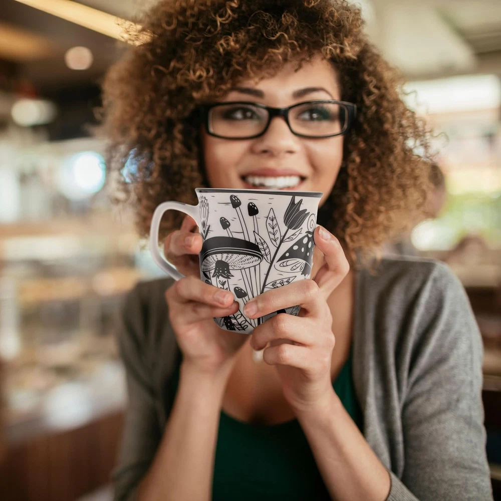 Karma Gifts 14 oz Black and White Boho Mug Mushroom - 14 Ounces, Product Details Brand: Karma Color: Mushroom Special Feature: Dishwasher Friendly, Microwave Safe Style: Bohemian Theme: Animals, Boho, Christmas, Valentine's Day, Wedding MaterialCapacity: Ceramic14 ounces Material: Ceramic Capacity: 14 ounces INSPIRATIONAL: Look forward to your daily beverage with our big coffee mugs. They feature unique feel-good prints that positively jump-start the day or end the night. UNIQUE DESIGNS: With one-of-a-kind illustrations and drawings, everyone can choose from our selection of large mugs. Pair our coffee mug with our coordinating Boho tea towels for a matching decorative style in the kitchen. COLLECT THEM ALL: This collection includes nature-inspired mugs. Each fun mug displays plants, animals, insects, and a calming message. Complete your assortment and add them to your coffee and tea collection. PERFECT SIZE: These cool coffee mugs make great gifts for coffee lovers. They hold up to 14 oz of your favorite refreshment, are microwave and dishwasher-safe, have a durable handle, and measure 4.25" L x 3.7" W. KARMA: We offer stunning and functional gifts and décor with unique, thoughtful designs and positive sentiments. Choose from our exclusive and expansive line of bags, stationery, travel accessories, apparel, and home goods for any occasion.
