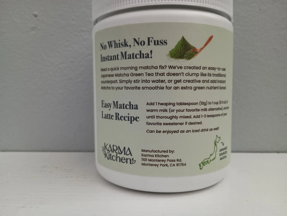 Karma Kitchen Instant Matcha Drink Mix 17 Servings 6 oz by Karma Kitchen • ANTIOXIDANTS: One cup of matcha contains more antioxidants than 10 cups of regular green tea. • GREEN ENERGY No jitters. No coffee-crash. Matcha provides natural caffeine that's easier on the body. • METABOLISM AID The unique antioxidant EGCG, or epigallocatechin gallate, is known to support metabolism. • BRAIN BOOST Matcha contains L-Theanine, a rare amino acid shown to promote your focus and calm. Matcha contains the nutrients from the entire tea leaf and contains more caffeine and antioxidants than are typically present in green tea. Studies of matcha and its components have unearthed a variety of benefits, showing that it can help protect the liver, promote heart health, and even aid in weight loss. JAPANESE MATCHA GREEN TEA POWDER: Green tea benefits without the grassy flavor or challenging preparation. Our Japanese matcha green tea has only half the amount of sugar as many other sweetened matcha powders. NATURAL NUTRIENT BOOST: Our matcha powder is a great source of energy to support focus without the dreaded coffee crash. Matchalicious matcha powder is 100% gluten free and vegan for an allergen-friendly blend. UNSWEETENED MATCHA: Each serving of our unsweetened matcha latte powder has 0g of sugar per serving. Enjoy as a delicious iced matcha latte or hot matcha tea with any milk, plant based milk or hot water. Add your own sweetener if you like your matcha sweet! DISSOLVES IN AN INSTANT: Simply add to hot or cold water, no whisking or frothing required. Add to your favorite smoothie, smoothie bowl, for a great nutrient boost. Perfect for work, travel, or your everyday tea latte.