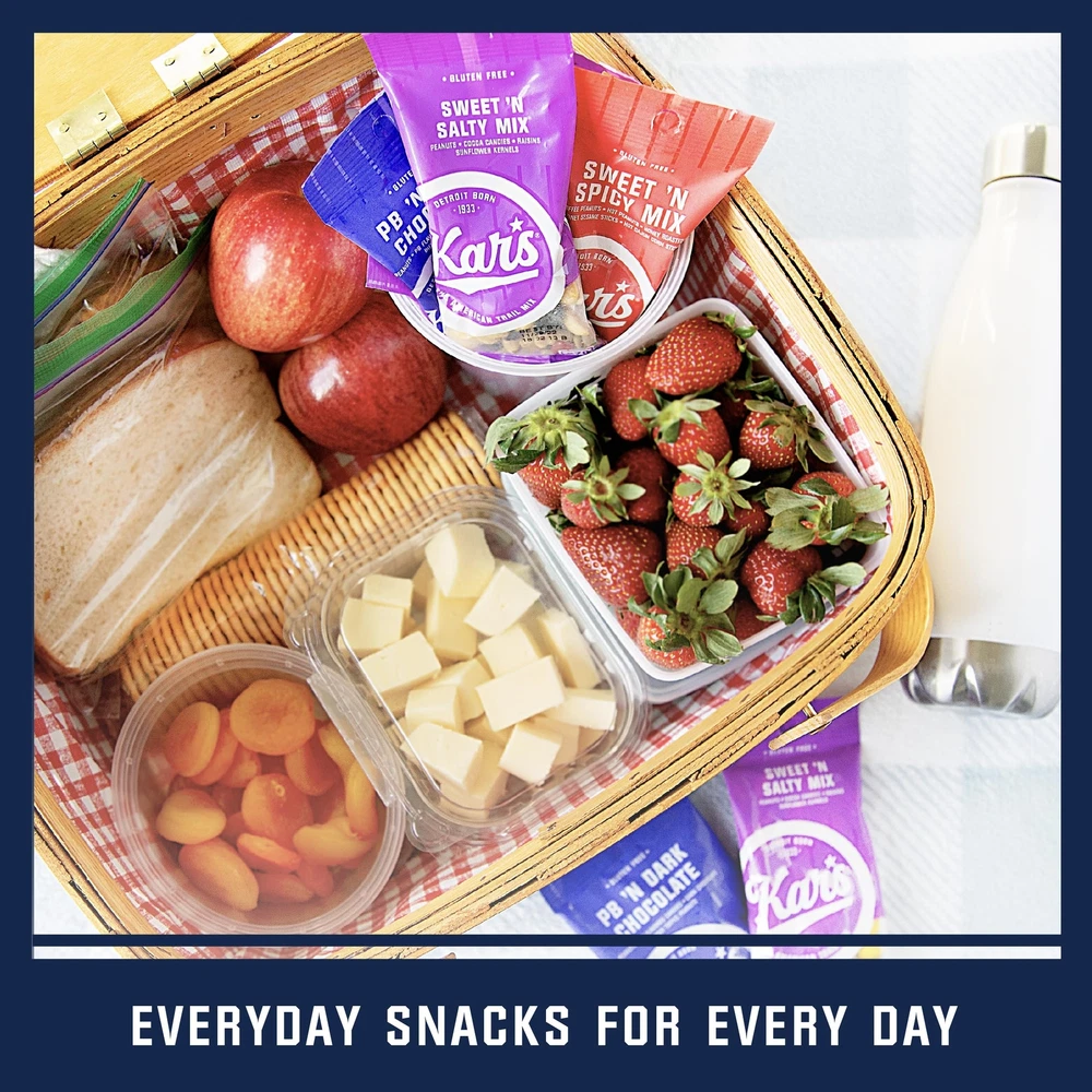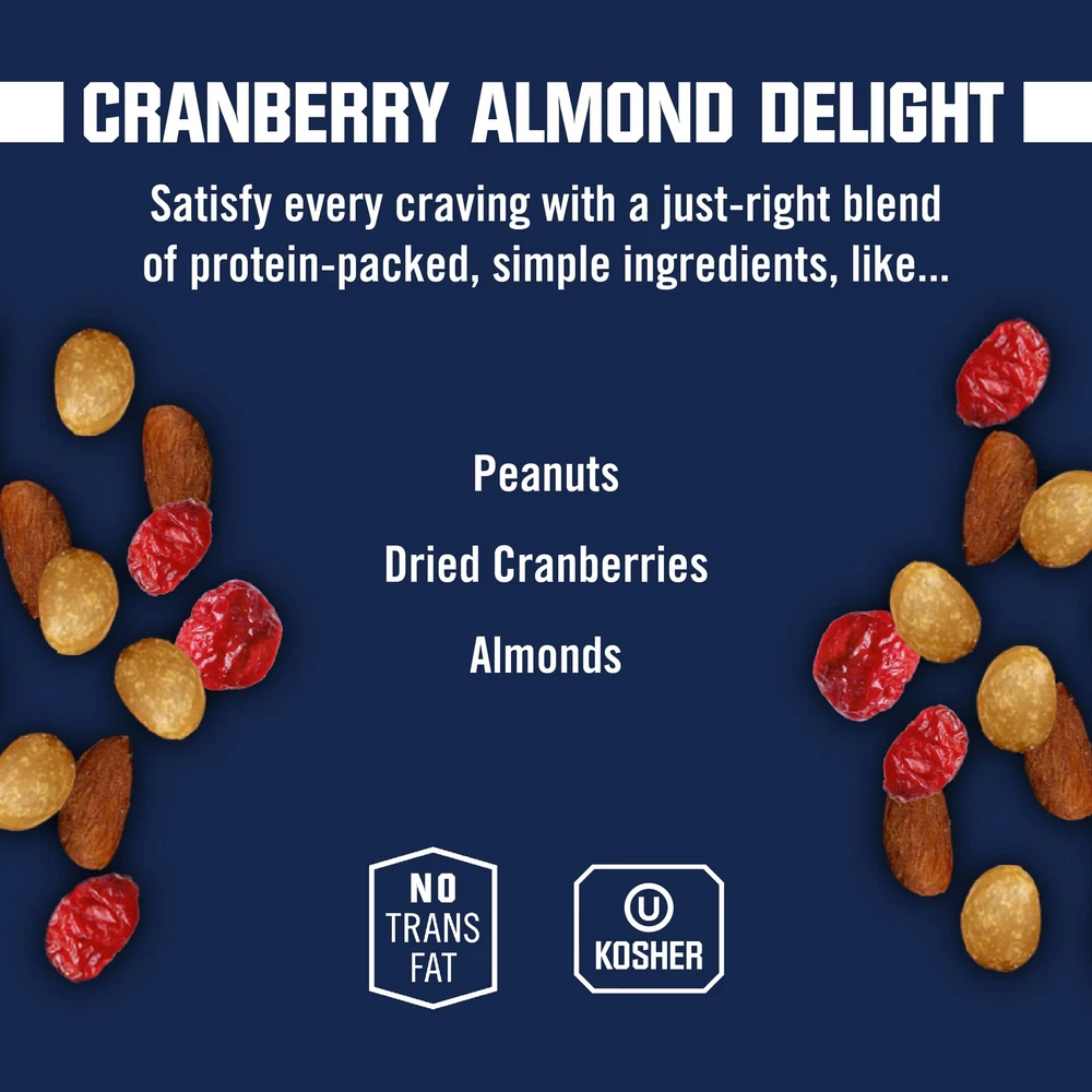 Satisfy your hunger with Kar’s Nuts Cranberry Almond Delight Trail Mix that includes (42) 3.0 oz individual snack packs. These bulk individually wrapped snacks are gluten-free, free of hydrogenated oils and trans fats, and are Certified. They make great travel snacks and are an easy addition to ’ lunches, concession stands, the office breakroom snacks stash, fundraising events and more. There’s no better way to describe it: this Kar’s Nuts individual packs of trail mix is truly a delight! It’s the perfect blend of gently roasted and salted peanuts, whole almonds and tart dried cranberries. This satisfying and sweet snack mix is the perfect mid-day pick-me-up, lunch snack or anytime sweet treat. We didn’t set out to change the way people snack. But we did have a hunch that perfectly roasted and salted nuts, naturally sweet raisins, cocoa candies and crunchy sunflower kernels would produce a winning Sweet 'N Salty Mix combination. And America agreed. Since our humble beginnings in 1933 outside of Tiger Stadium, Kar’s Nuts has become a nationwide sensation—and it all started with good ol’ roasted peanuts. You could say we pioneered the Sweet 'N Salty movement, and if you did, you’d be right. HEALTHY SNACKS FOR ADULTS & – Satisfy your hunger with this Kar’s Nuts Cranberry Almond Delight Trail Mix packets. This pack of bulk trail mix includes (42) 3 oz individually wrapped snacks. CRANBERRY ALMOND TRAIL MIX - This snack mix is truly a delight! It’s the perfect blend of gently roasted and lightly salted peanuts, whole almonds and tart dried cranberries. It’s a quick snack that’s both sweet and satisfying! GLUTEN-FREE – Kar’s Nuts trail mix snack packs are gluten-free and free of hydrogenated oils and trans fats. It is also certified ! You can feel good about enjoying and sharing these nut snack packs with your friends and family. INDIVIDUAL TRAIL MIX PACKS – Ready to enjoy individual packs make these bulk snacks easy to take on-the-go. Our conveniently packaged nut mix will leave you satisfyingly full. They’re great for travel snacks, ’ lunches, office breakrooms & more. KAR’S NUTS – Since our humble beginnings in 1933, Kar’s Nuts has become a nationwide sensation—and it all started with good ol’ roasted peanuts. You could say we pioneered the Sweet 'N Salty Nut Snack Mix movement, and if you did, you’d be right.