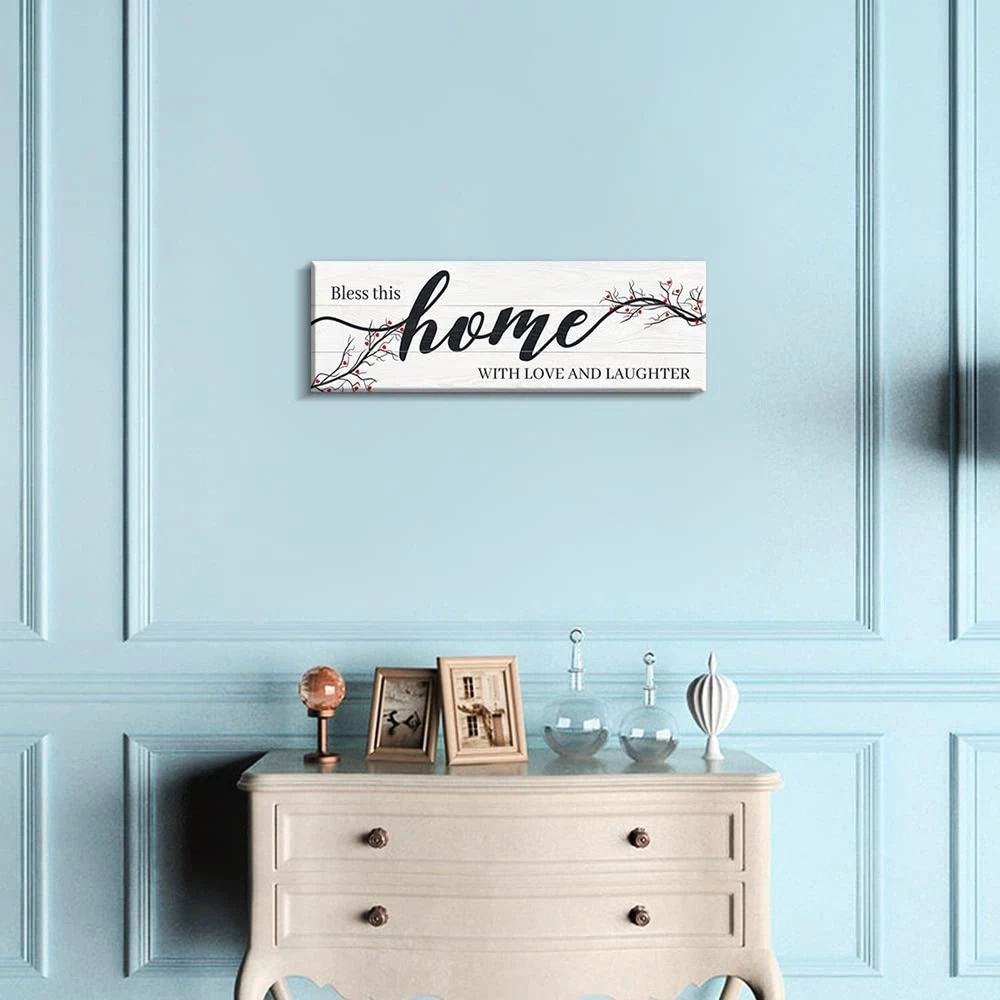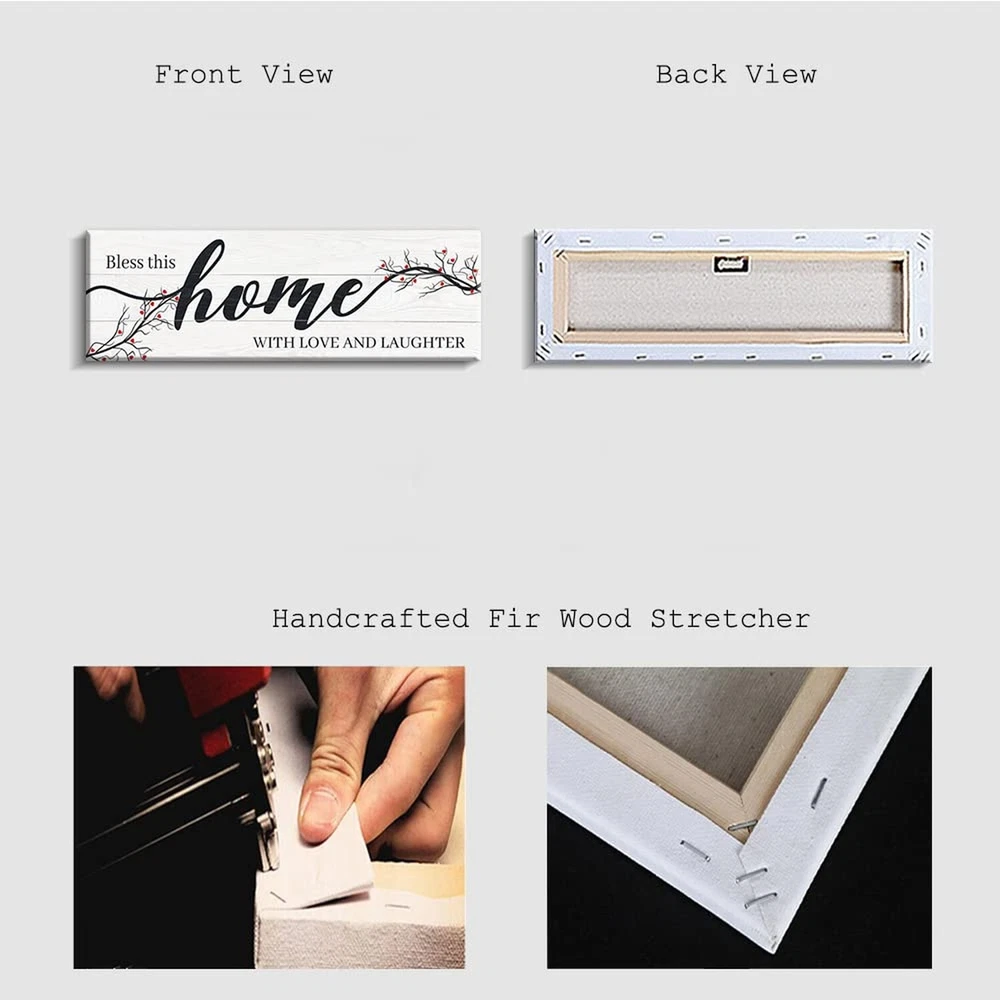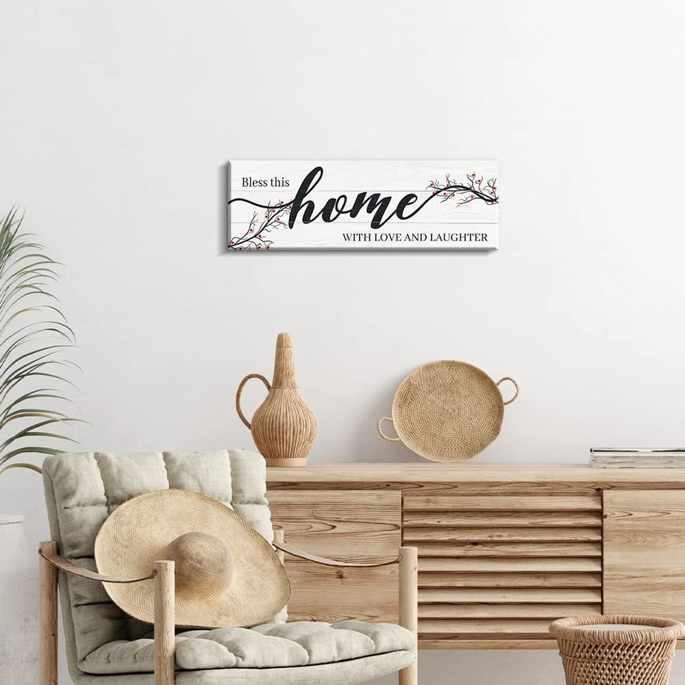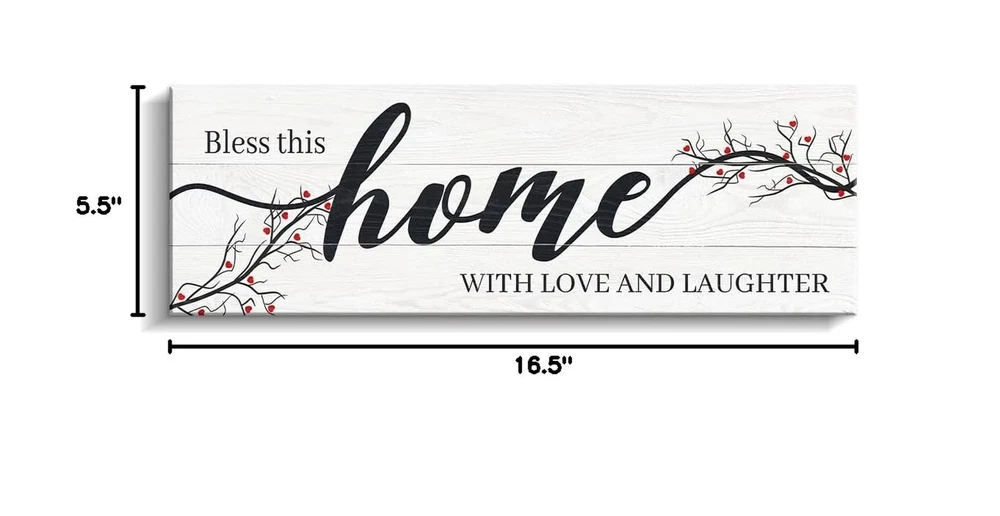 Kas Home Family Wall Decor Rustic Home Sign Inspirational Saying - Blessed This Home With Love And Laughter Canvas Wall Art for Bedroom Living Room Kitchen (5.5x16.5 inch, White - Home) Product Details Size: 16.5L" x 5.5W" Color: White - Home Brand: Kas Home MPN: Does not apply UPC: Does not apply EAN: Does not apply Product Dimensions: 16.5 x 5.5 x 0.2 inches Item Weight: 8.5 ounces Manufacturer: Kas Home Date First Available: April 19, 2022 Wall Decor With Love This home sign wall decor size is 5.5x16.5 inch, with inspirational quotes "Blessed This Home With Love And Laughter", that shows how much you care your family! Safe & Durable Blessed sign is made of high quality canvas, professionally digitally printed with vibrant colors, high toughness, wrinkle resistant, fade resistant and can be used for a long time. Warm Gift This family wall decor can meet your daily home decoration, suitable for hanging in bedroom/living room/kitchen etc. It is also a great gift for family and friends during the holidays! Our love decor ensure quick safe arrival at your home or office. Can be hung on the wall or placed on the countertop when received Its production process is being monitored to secure its quality, we proudly stand behind your purchase, if the home sign does not exceed your expectations, simply email us, we are always ready to help you!