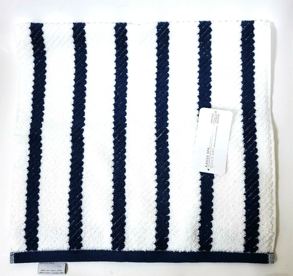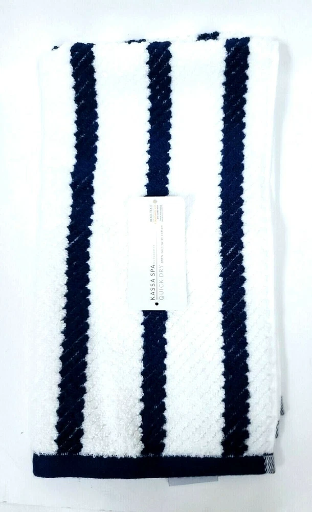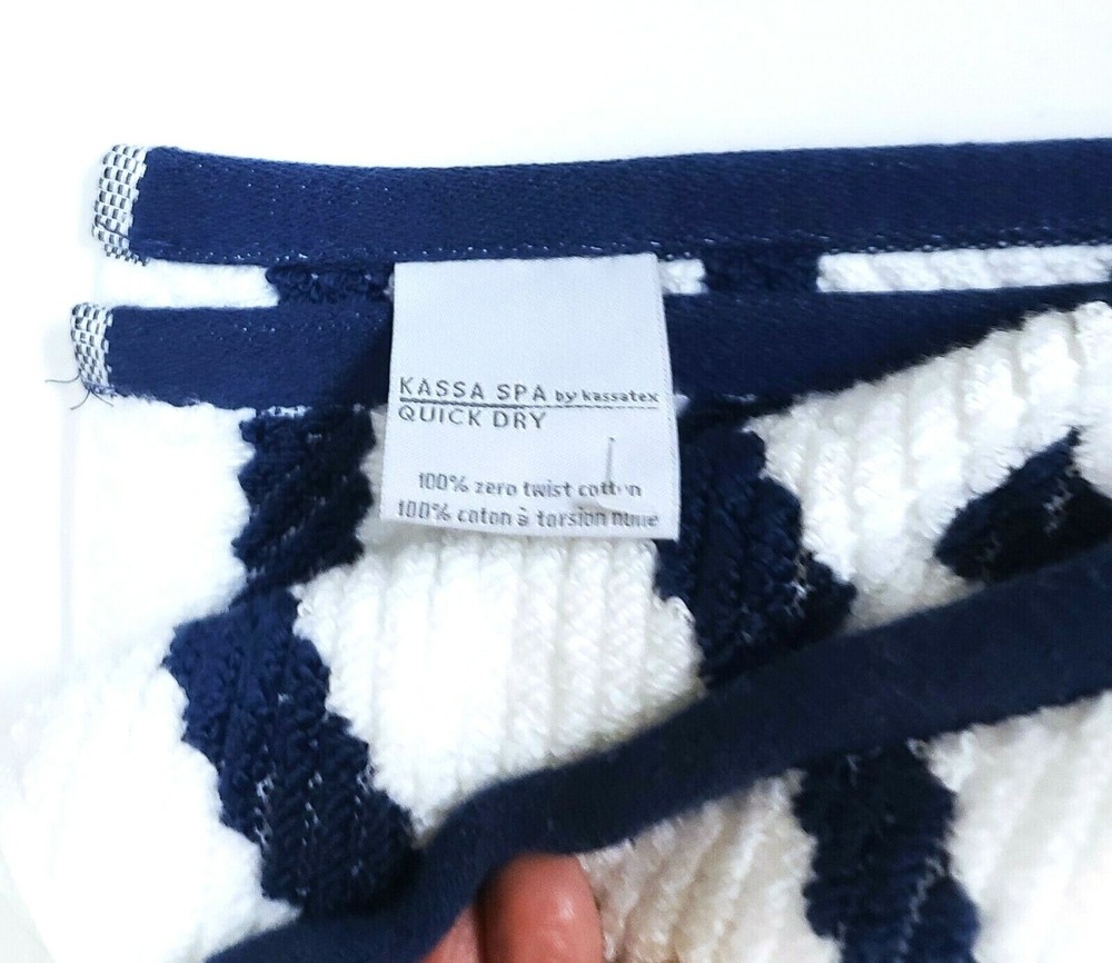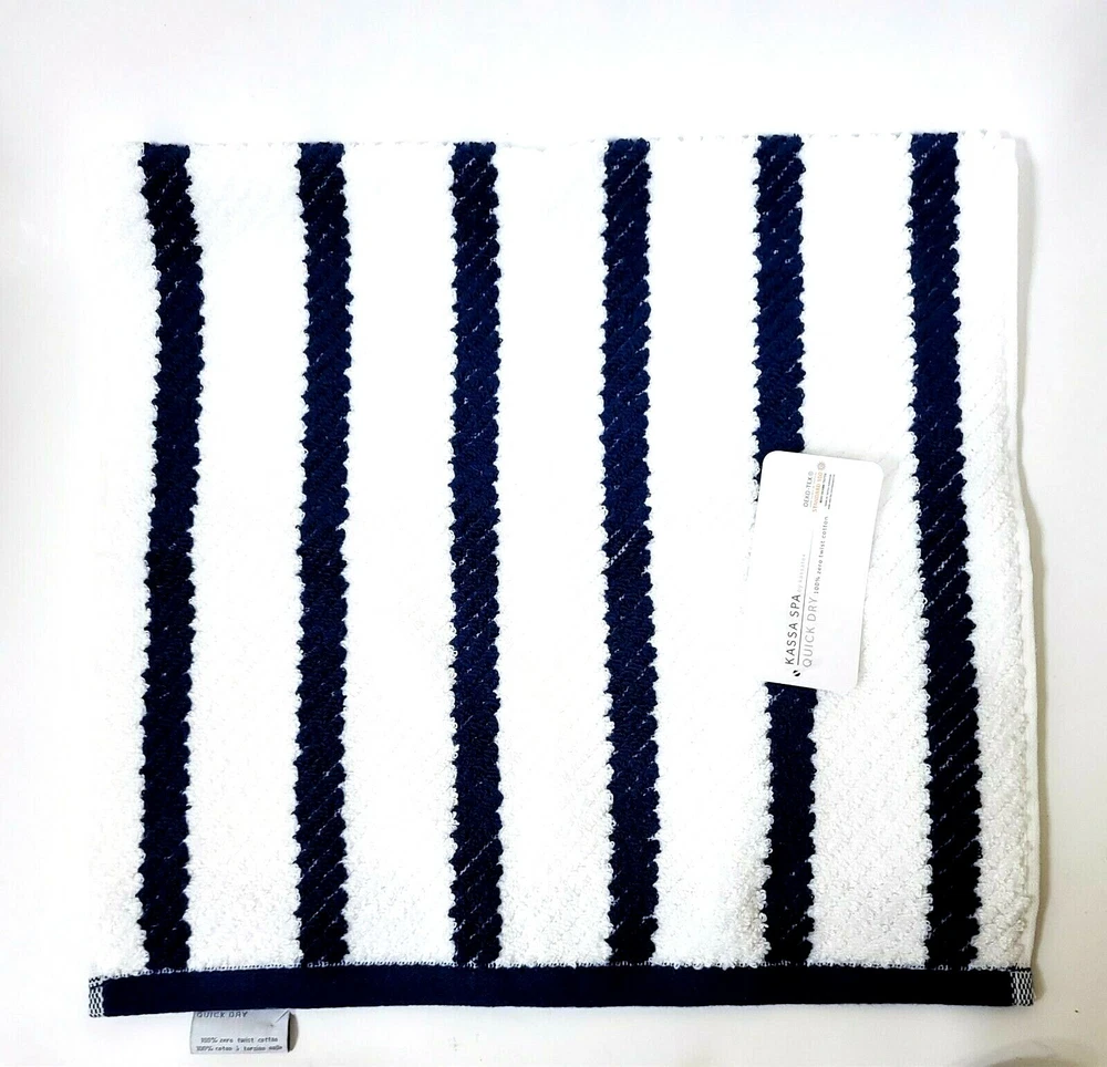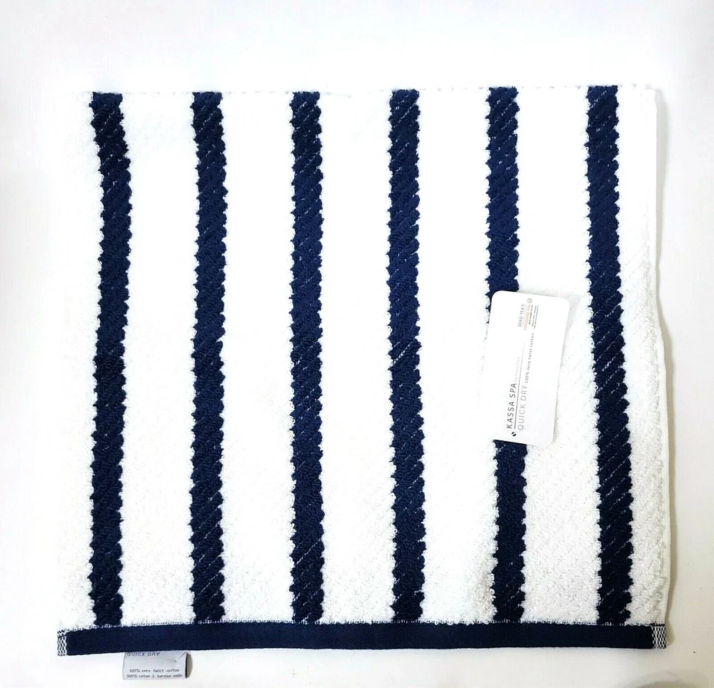 KASSA SPA WHITE,NAVY BLUE QUICK DRY ZERO TWIST COTTON BATH, or HAND, or WASH CLOTH TOWEL BRAND NEW WITH TAG BRAND NEW with TAGS! Material: 100% Cotton Approximate Dimensions: 17" x 27.5" (hand towel), 52" x 27" (bath towel), 12" X 12" (WASHCLOTH) Condition: Brand new This listing includes: ONE BATH TOWEL, ONE HAND TOWEL, OR SET OF 4 WASHCLOTHES (DEPENDS ON WHICH ONE YOU WANT YOU NEED TO SELECT FROM THE PULL DOWN MENU/BAR). SUPER ABSORBENT, LONG LASTING AND SOFT TOWELS!! I LIST DIFFERENT ITEMS ALL OF THE TIME, PLEASE SUBSCRIBE TO MY NEWS LETTER TO RECEIVE THE NEWEST LISTINGS. SHIPPING I am happy to offer a combination shipping discount of 50% off on the shipping for the second, third, etc... items (off of the lesser values.) The second or third items must be purchased within the same day of the first item. eBay does not automatically combine the shipping so as the customer you are responsible for contacting us so that we may manually adjust it for you!!!! Please let us know as soon as possible, so that we do not send your first item the next day after we process your order. INTERNATIONAL ORDERS WE ARE HAPPY TO OFFER COMBINED INTERNATIONAL SHIPPING AND WILL DISCOUNT THE SHIPPING COST ACCORDINGLY. YOU ARE RESPONSIBLE TO CONTACT US AND LET US KNOW WHEN YOU PURCHASE MULTIPLE ITEMS AS eBAY DOES NOT AUTOMATICALLY DO IT FOR YOU. PLEASE LET US KNOW AS SOON AS POSSIBLE SO THAT WE DO NOT SEND YOUR 1ST ORDER OUT RIGHT AWAY. Import duties, taxes, and charges are not included in the item price or shipping cost. These charges are the buyer's responsibility. Please check with your country's customs office to determine what these additional costs will be prior to bidding or buying.Customs fees are normally charged by the shipping company or collected when you pick the item up. These fees are not additional shipping charges. We ship very quickly but delivery times outside the US vary greatly from country to country and there is no way to predict when your package will arrive. Most often the process goes very smoothly but items do sometimes get delayed in customs.
