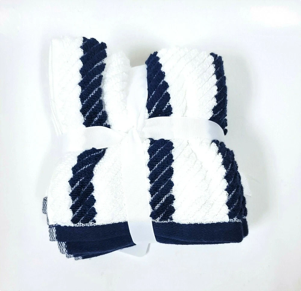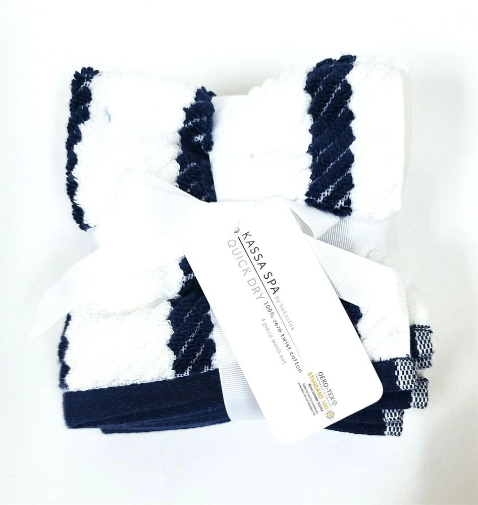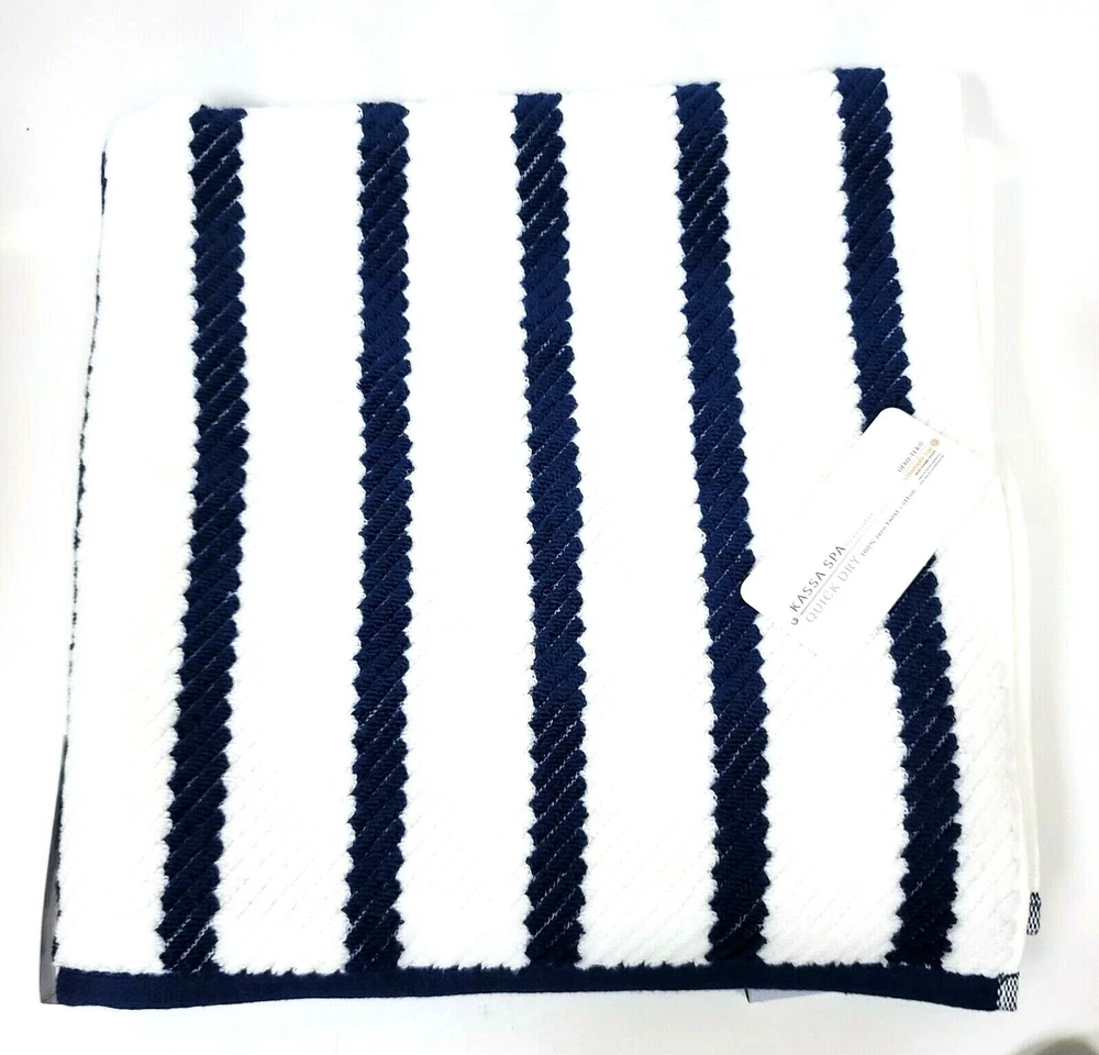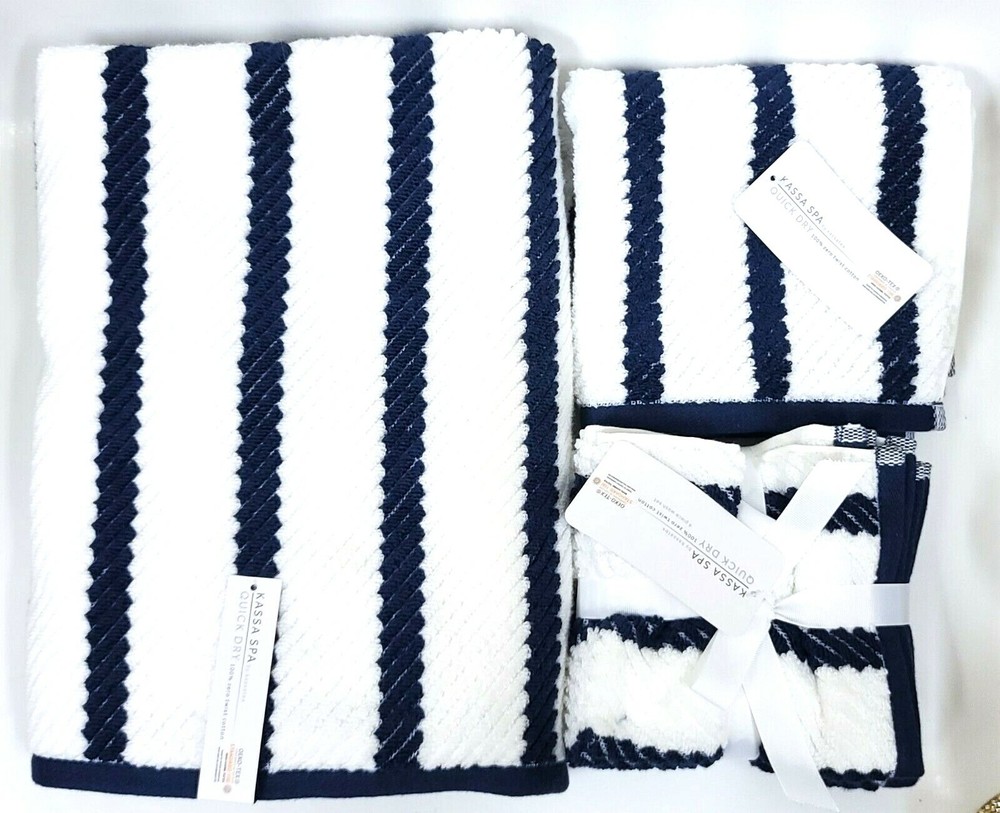 KASSA SPA WHITE,NAVY BLUE QUICK DRY ZERO TWIST COTTON BATH, or HAND, or WASH CLOTH TOWEL BRAND NEW WITH TAG BRAND NEW with TAGS! Material: 100% Cotton Approximate Dimensions: 17" x 27.5" (hand towel), 52" x 27" (bath towel), 12" X 12" (WASHCLOTH) Condition: Brand new This listing includes: ONE BATH TOWEL, ONE HAND TOWEL, OR SET OF 4 WASHCLOTHES (DEPENDS ON WHICH ONE YOU WANT YOU NEED TO SELECT FROM THE PULL DOWN MENU/BAR). SUPER ABSORBENT, LONG LASTING AND SOFT TOWELS!! I LIST DIFFERENT ITEMS ALL OF THE TIME, PLEASE SUBSCRIBE TO MY NEWS LETTER TO RECEIVE THE NEWEST LISTINGS. SHIPPING I am happy to offer a combination shipping discount of 50% off on the shipping for the second, third, etc... items (off of the lesser values.) The second or third items must be purchased within the same day of the first item. eBay does not automatically combine the shipping so as the customer you are responsible for contacting us so that we may manually adjust it for you!!!! Please let us know as soon as possible, so that we do not send your first item the next day after we process your order. INTERNATIONAL ORDERS WE ARE HAPPY TO OFFER COMBINED INTERNATIONAL SHIPPING AND WILL DISCOUNT THE SHIPPING COST ACCORDINGLY. YOU ARE RESPONSIBLE TO CONTACT US AND LET US KNOW WHEN YOU PURCHASE MULTIPLE ITEMS AS eBAY DOES NOT AUTOMATICALLY DO IT FOR YOU. PLEASE LET US KNOW AS SOON AS POSSIBLE SO THAT WE DO NOT SEND YOUR 1ST ORDER OUT RIGHT AWAY. Import duties, taxes, and charges are not included in the item price or shipping cost. These charges are the buyer's responsibility. Please check with your country's customs office to determine what these additional costs will be prior to bidding or buying.Customs fees are normally charged by the shipping company or collected when you pick the item up. These fees are not additional shipping charges. We ship very quickly but delivery times outside the US vary greatly from country to country and there is no way to predict when your package will arrive. Most often the process goes very smoothly but items do sometimes get delayed in customs.