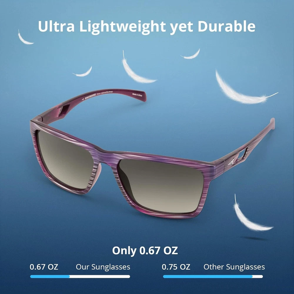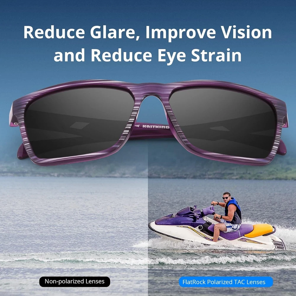 KastKing Flatrock Polarized Sunglasses The FlatRock sunglasses feature a lightweight pliable Grilamid frame for extended comfort during long periods of use. The frames are built to survive years of active use, they're ultra-lightweight, extremely flexible, resistant to heat & UV rays, and possess excellent memory and retain their shape. Previous page Next page 1 Colorful series 2 Stylish series Polarized Sports Sunglesses Polarization helps to reduce glare caused by reflected light which helps to improve vision and reduce eye strain and also allows anglers to see into the water and spot fish which essential for sight fishing. All KastKing eyewear lenses block 100% of the harmful UVA UVB rays. Base Lens Color Guide KastKing lenses are protected with a tough oleophobic coatings to protect the lenses from dirt, dust, oil, chemicals, and harsh saltwater conditions. Product Dimensions Enjoy all your outdoor activities in style and comfort with FlatRock polarized sports sunglasses designed for fashion and function. This comfortable lightweight frame is ideal for driving and sports activities such as biking, running, boating, fishing, and golfing. Polarized Fishing Sunglasses Huzzah Buying Options Skidaway Buying Options Flatrock Buying Options Osage Buying Options Skinner Buying Options Customer Reviews 4.4 out of 5 stars 2,911 4.4 out of 5 stars 9,516 4.5 out of 5 stars 1,111 4.5 out of 5 stars 555 4.4 out of 5 stars 85 Price $28.49 $ 28 . 49 $26.99 $ 26 . 99 $28.49 $ 28 . 49 $26.99 $ 26 . 99 $23.99 $ 23 . 99 Style FULL Wrap Design FULL Wrap Design Square Frame Design FULL Wrap Design One Piece Wide View Flame Width 5.28 inches 5.23 inches 5.39 inches 5.3 inches 5.6 inches Lens Width 2.44 inches 2.31 inches 2.28 inches 2.5 inches 5.7 inches Polarized ✔ ✔ ✔ ✔ ✔ Bifocal ✘ ✘ ✘ ✘ ✘ Man/Women Unisex Unisex Unisex Unisex Unisex