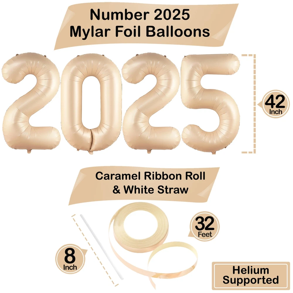 KatchOn Giant Caramel 2025 Balloon Numbers - Large 42 Inch 2025 Balloons Cara...