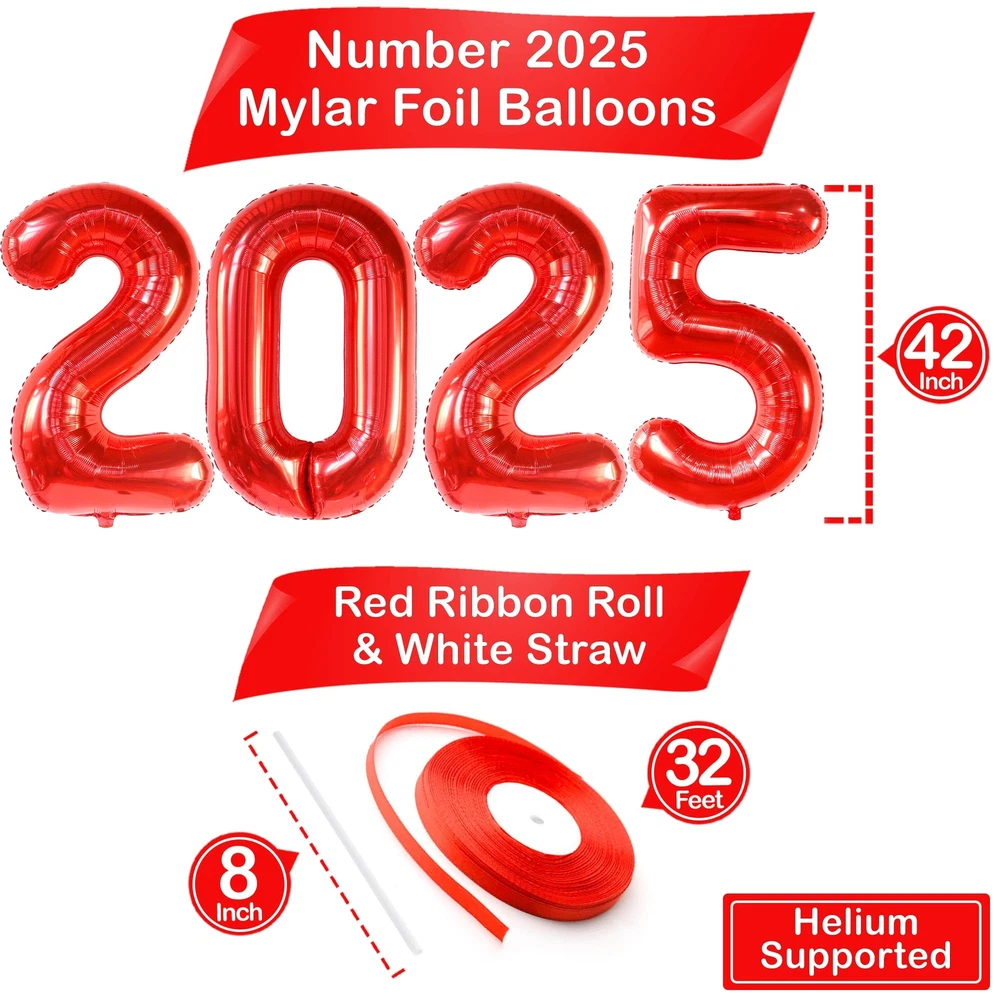 KatchOn Giant Red 2025 Balloon Numbers - 42 Inch New Years Balloons | 2025 Ba...