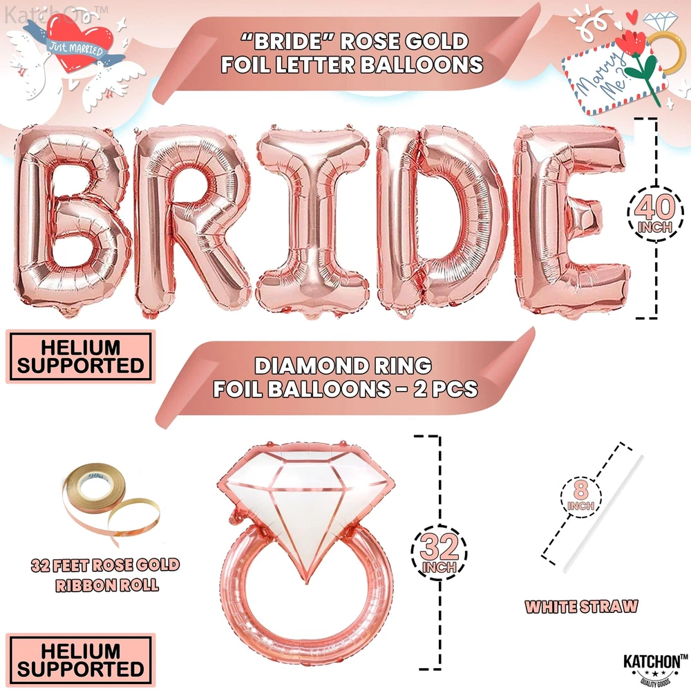 KatchOn Giant Rose Gold Bride Balloons - 40 Inch | Bachelorette Party Decorat...