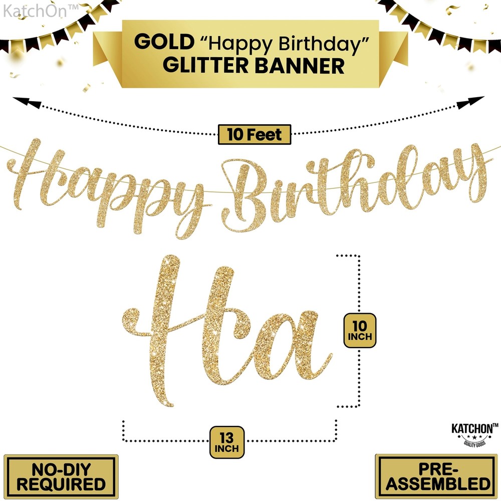 KatchOn, Glitter Gold Happy Birthday Banner - Pre-Strung, 10 Feet | Gold Happy Birthday Sign for Backdrop | Gold Birthday Banner for Happy Birthday Decorations | Backdrop for Gold Birthday Decorations 10 FEET | GLITTER GOLD HAPPY BIRTHDAY CURSIVE BANNER : The 10 Feet Gold happy birthday banner cursive is the perfect way to add a touch of elegance and sophistication to your Gold birthday decorations party. The gold happy birthday sign is both classic and modern, making it the perfect choice for any occasion. Re-use this backdrop for your party, or string it across the room for a fun happy birthday decorations for girls. Use Gold birthday banner for Gold party decorations. VIBRANT COLOR | PREMIUM QUALITY : Stunning happy birthday letter banner Gold has a beautiful cursive font that spells out "happy birthday" in a bold and eye-catching design. Each letter is made from high-quality material making it a perfect decor for any Gold birthday decorations . Our Happy birthday banners Gold is guaranteed to stay together throughout the party, making it a best decor for birthday decorations gold. Embrace Gold party decorations for girls. DURABLE | EASY TO ASSEMBLE : This Gold happy birthday banner is durable and Grade A quality. It has Gold string roll which makes it easier to assemble and can be hung on walls, ceilings,or even in your car. This gold happy birthday sign for backdrop is durable and long-lasting, ensuring special days are remembered. Celebrate withour Large happy birthday banner for Gold birthday decorations. Wish happy birthday girl with a warmth and beautiful party style of gold happy birthday decorations ELEVATE YOUR BIRTHDAY PARTY : The shimmering colors ensure the gold happy birthday banner letters will shine in your birthday decorations gold. If this very stylish gold birthday banner is not up to your satisfaction, then we are here to assist you. We are very confident with its quality, durability & stylish effect of this happy birthday backdrop banner. Embrace Elegance with cursive happy birthday banner Gold. INSTAGRAMMABLE | STYLISH HAPPY BIRTHDAY DECORATIONS : Happy birthday banner Gold cursive is perfect for party and is a great add on to your Gold birthday party supplies. The gold happy birthday sign for backdrop can be used as Gold decorations for party, gold birthday party decorations for women, Gold sweet 16 birthday decorations, birthday decorations for men. Make your happy birthday decorations event a big hit ! Decorate your happy birthday banner Gold and get ready to have a blast party! Powered by BRND.ME 10 FEET | GLITTER GOLD HAPPY BIRTHDAY CURSIVE BANNER : The 10 Feet Gold happy birthday banner cursive is the perfect way to add a touch of elegance and sophistication to your Gold birthday decorations party. The gold happy birthday sign is both classic and modern, making it the perfect choice for any occasion. Re-use this backdrop for your party, or string it across the room for a fun happy birthday decorations for girls. Use Gold birthday banner for Gold party decorations. VIBRANT COLOR | PREMIUM QUALITY : Stunning happy birthday letter banner Gold has a beautiful cursive font that spells out "happy birthday" in a bold and eye-catching design. Each letter is made from high-quality material making it a perfect decor for any Gold birthday decorations . Our Happy birthday banners Gold is guaranteed to stay together throughout the party, making it a best decor for birthday decorations gold. Embrace Gold party decorations for girls. DURABLE | EASY TO ASSEMBLE : This Gold happy birthday banner is durable and Grade A quality. It has Gold string roll which makes it easier to assemble and can be hung on walls, ceilings,or even in your car. This gold happy birthday sign for backdrop is durable and long-lasting, ensuring special days are remembered. Celebrate withour Large happy birthday banner for Gold birthday decorations. Wish happy birthday girl with a warmth and beautiful party style of gold happy birthday decorations ELEVATE YOUR BIRTHDAY PARTY : The shimmering colors ensure the gold happy birthday banner letters will shine in your birthday decorations gold. If this very stylish gold birthday banner is not up to your satisfaction, then we are here to assist you. We are very confident with its quality, durability & stylish effect of this happy birthday backdrop banner. Embrace Elegance with cursive happy birthday banner Gold. INSTAGRAMMABLE | STYLISH HAPPY BIRTHDAY DECORATIONS : Happy birthday banner Gold cursive is perfect for party and is a great add on to your Gold birthday party supplies. The gold happy birthday sign for backdrop can be used as Gold decorations for party, gold birthday party decorations for women, Gold sweet 16 birthday decorations, birthday decorations for men. Make your happy birthday decorations event a big hit ! Decorate your happy birthday banner Gold and get ready to have a blast party! Powered by BRND.ME Shipping from the USA All of our products are shipped from the USA, ensuring quick delivery to your destination. Payment We offer the following payment methods: PayPal, credit card, bank transfer, and eBay's secure payment system. Free Shipping & Free Returns Shipping within the USA is FREE. Additionally, any return is absolutely free for you. Risk-Free Purchase You have the option to return an item within 30 days without any justification. We cover the return shipping costs! Fast Shipping We ship immediately upon receipt of payment. Generally, the package is delivered within 2-3 days in the USA. If it takes longer, we will contact you. Quality and Costs Made in Europe, USA, China No customs fees or additional charges Total satisfaction guarantee Invoice with declared VAT available upon request in .pdf format Feedback Your feedback is very important to us. After you pay for your purchase, you will automatically receive positive feedback from us.