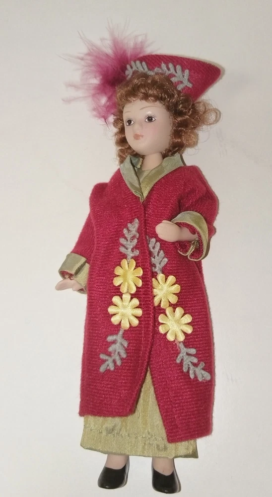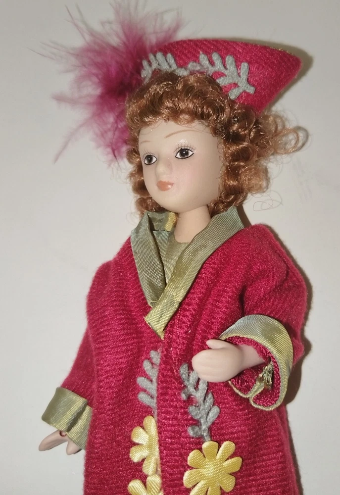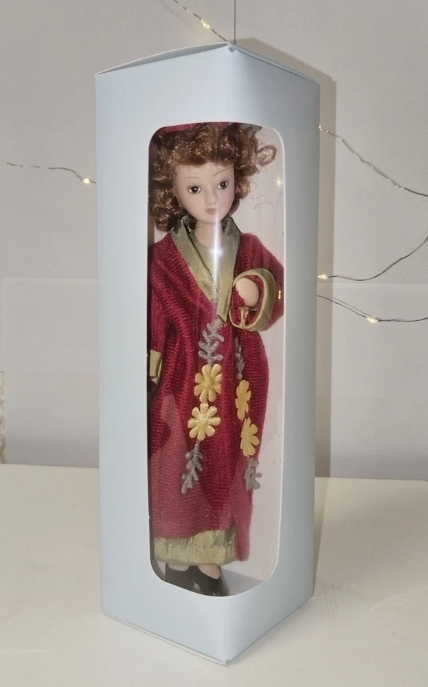 The "Kate Crowe" doll from the Deagostini collection is a 9-inch porcelain doll with wavy light brown hair and black eyes. She is part of the "Ladies of the Porcelain Doll Era" series, designed as a girl doll with a medium light complexion. This original porcelain doll was manufactured sometime between 2010-2019 and is not considered vintage or antique. Kate Crowe is sold as a single piece in a lot and is a charming addition to any doll collection.