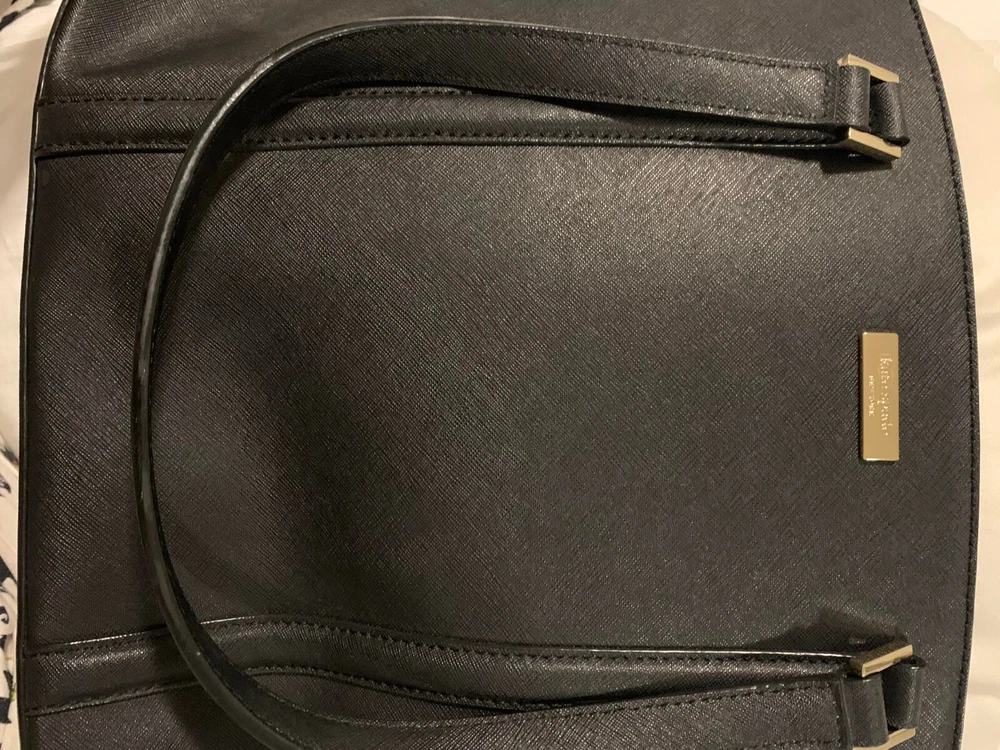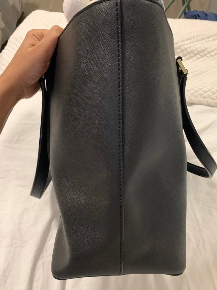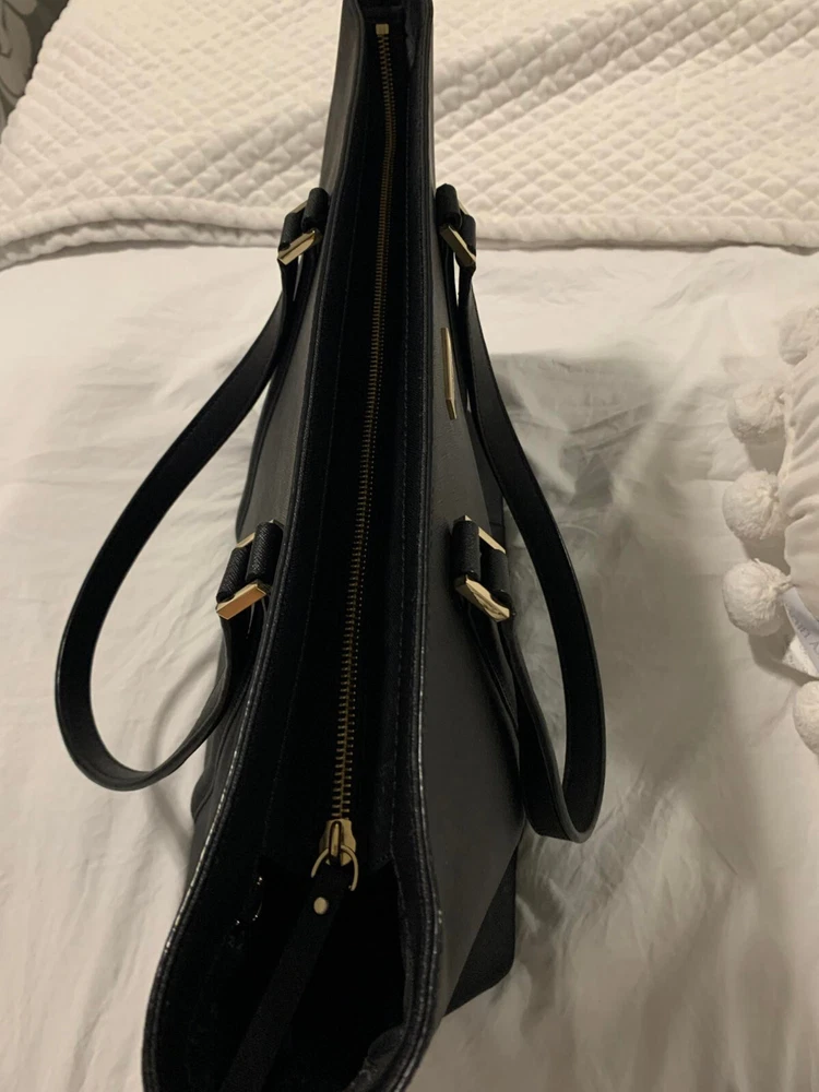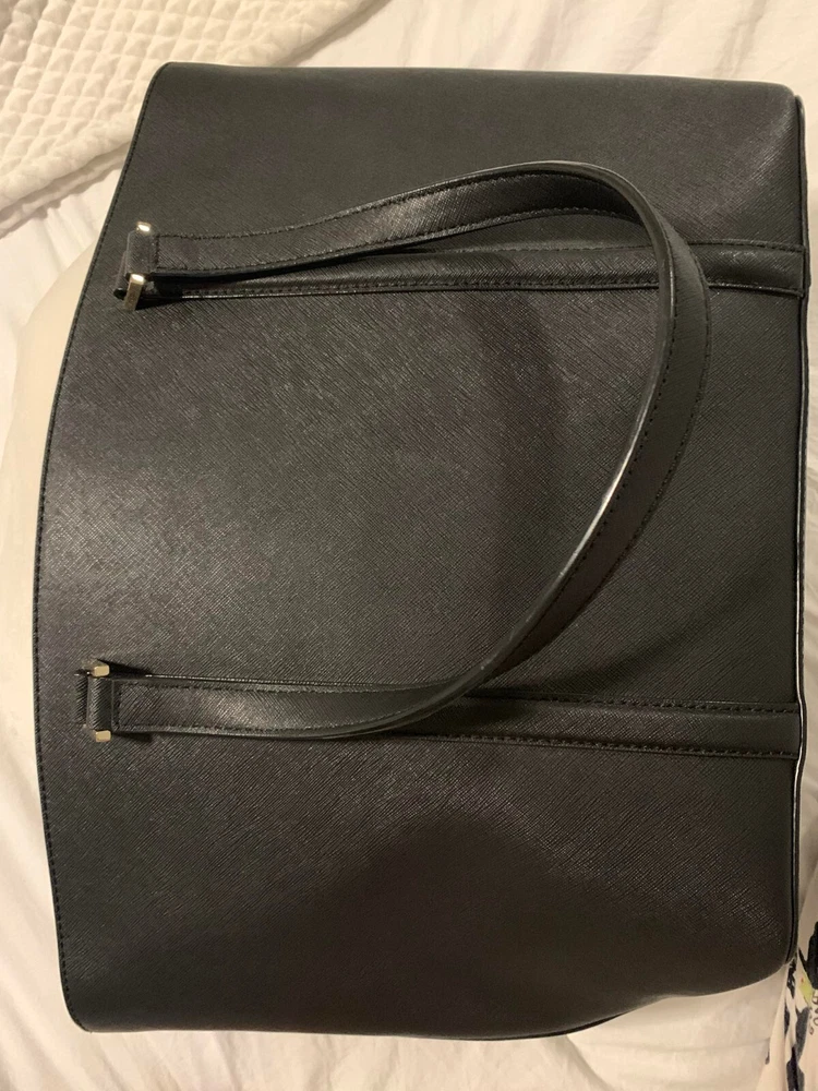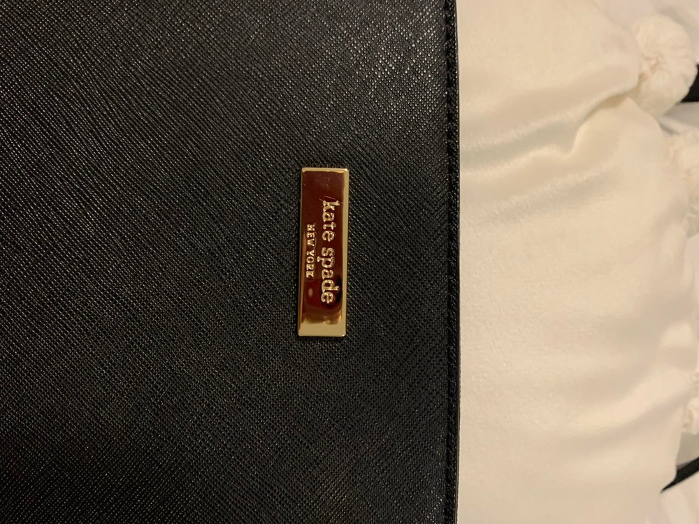 This Kate Spade leather tote shoulder bag is the perfect accessory for any casual or business occasion. The bag features a solid black exterior color and is made of high-quality leather material. It has a large size with a width of 13 inches, height of 12 inches, and depth of 8 inches. The bag comes with a shoulder strap handle in black color and is designed with a zip closure.The bag has multiple features including inner pockets. It is suitable for women and has a style of a shoulder bag. The handle and strap are made of leather material. Get your hands on this stylish Kate Spade shoulder bag today! The manufacturer info is the following: RN0102760/CA57710 (see photo of tag). There is a small defect on the side of the bag as shown in the photos. Happy bidding!