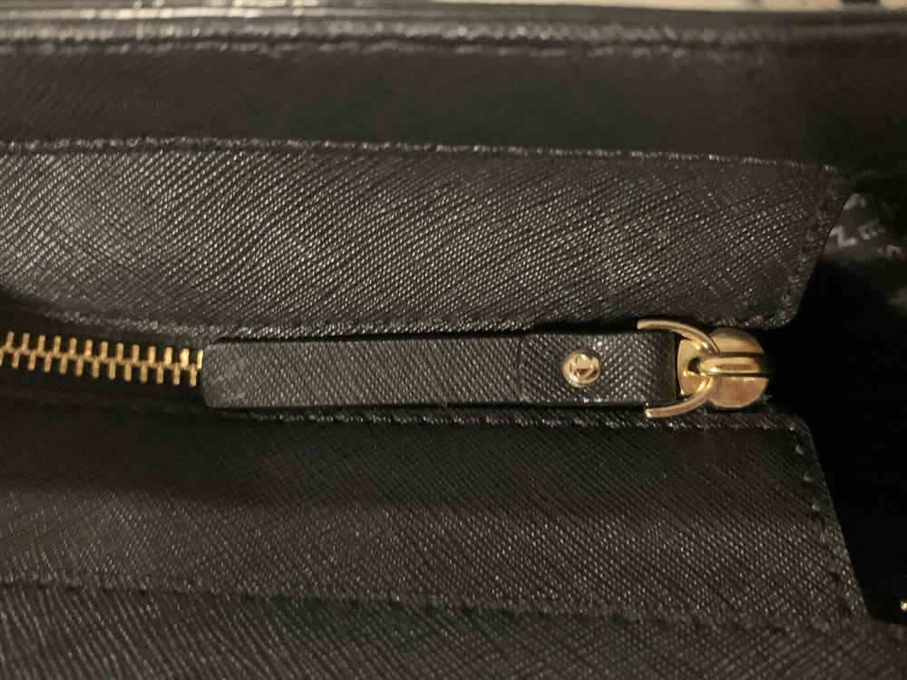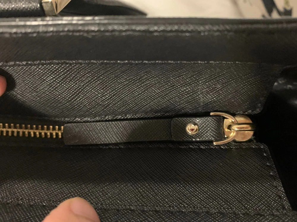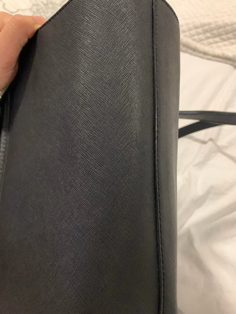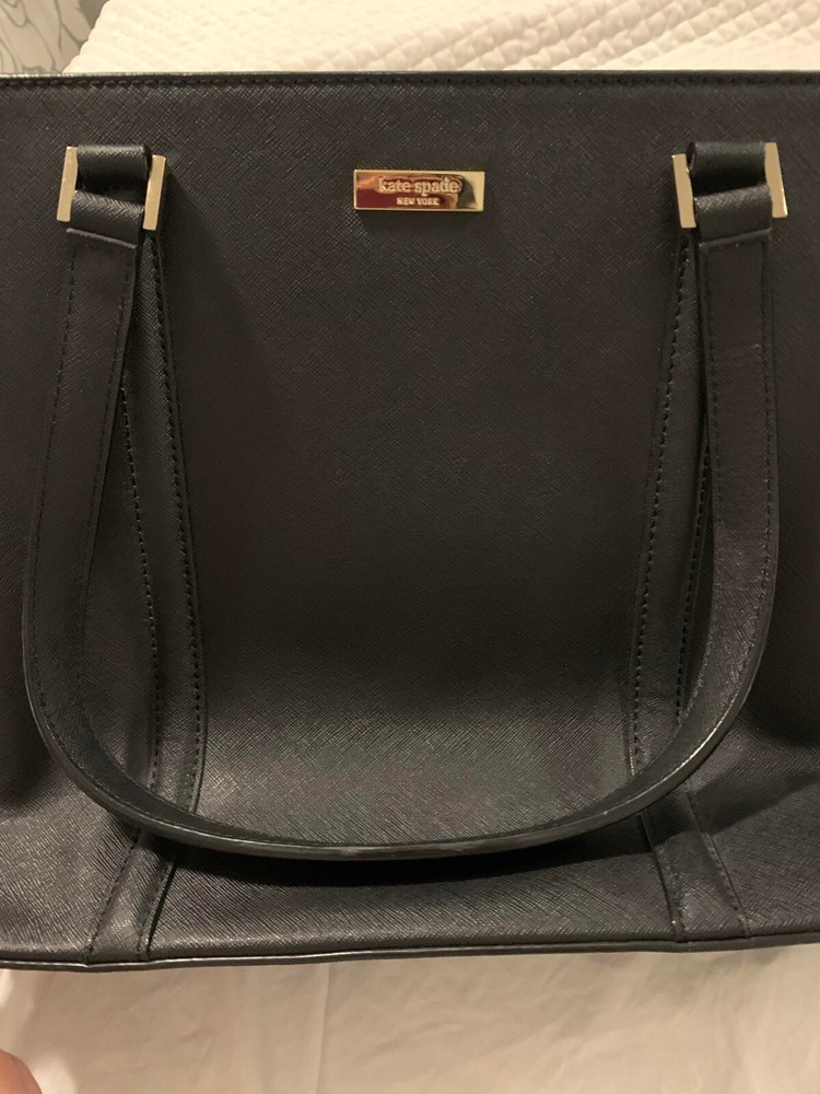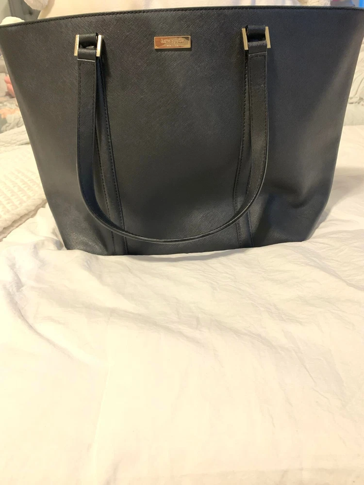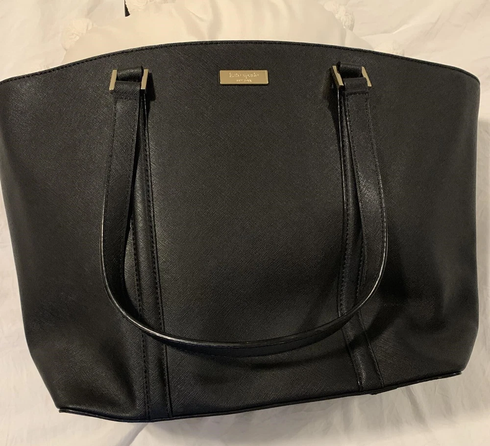 This Kate Spade leather tote shoulder bag is the perfect accessory for any casual or business occasion. The bag features a solid black exterior color and is made of high-quality leather material. It has a large size with a width of 13 inches, height of 12 inches, and depth of 8 inches. The bag comes with a shoulder strap handle in black color and is designed with a zip closure.The bag has multiple features including inner pockets. It is suitable for women and has a style of a shoulder bag. The handle and strap are made of leather material. Get your hands on this stylish Kate Spade shoulder bag today! The manufacturer info is the following: RN0102760/CA57710 (see photo of tag). There is a small defect on the side of the bag as shown in the photos. Happy bidding!