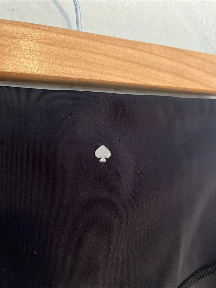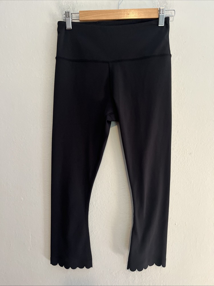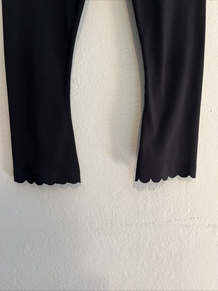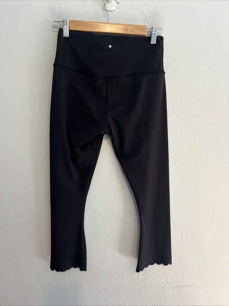 Amazing pair of scalloped cropped leggings by Kate Spade! Measurements Waist: 13 in Rise: 10 in Inseam: 22 in Length: 29.5 in Condition: Pre owned and excellent - minor peeling of brand. See all photos. 251005