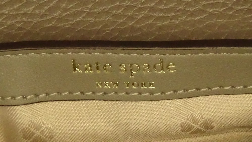 Kate Spade Bradley north/south leather phone crossbody true taupe. Phone crossbody with magnetic snap flap over closure, rich pebble leather with chain leather strap. 3 interior credit card slots. Magnetic snap flap over spade fabric gold tone hardware pinmount logo. Small size bag