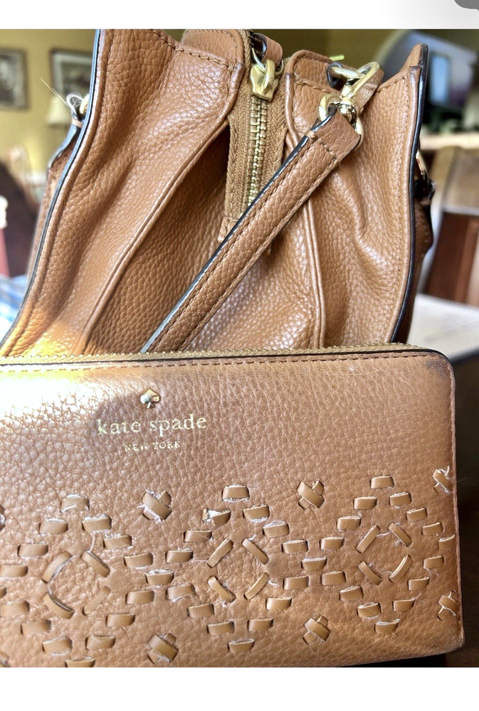 Kate Spade" Brown Leather Purse Tote w/ Matching Wallet.