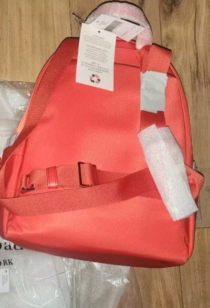 📌BRAND NEW WITH TAGS..GORGEOUS ❤️❤️❤️ This Kate Spade Chelsea Medium Backpack is a stylish and practical accessory for any woman. With a rectangular shape and a zip closure, it's perfect for casual occasions. The backpack features a red nylon and leather exterior, with gold hardware accents and a logo accent. The backpack has a medium size, with a bag width of 10 inches, a bag height of 12 inches, and a bag depth of 5.5 inches. It has a top handle with a drop of 3 inches and an adjustable strap. The interior is lined with fabric and has inner pockets, outer pockets, and a lightweight design. This backpack is part of the Kate Spade product line and is brand new with tags.