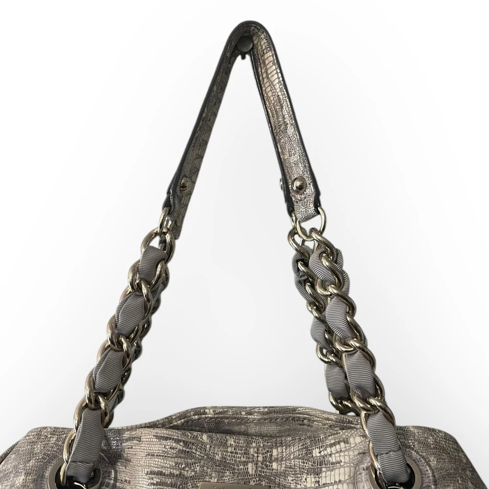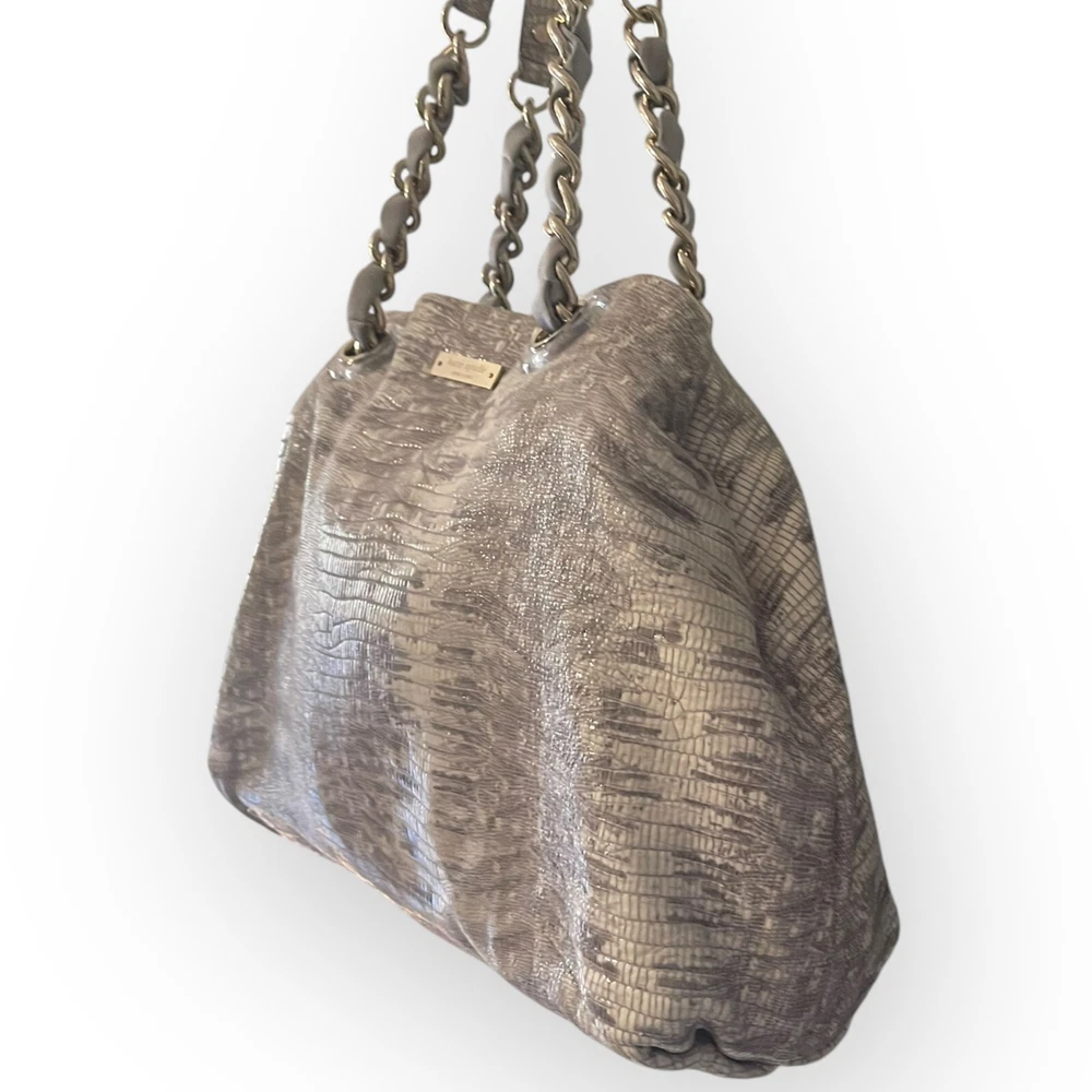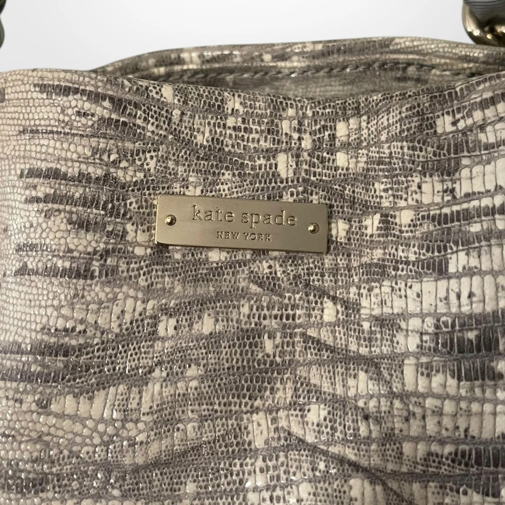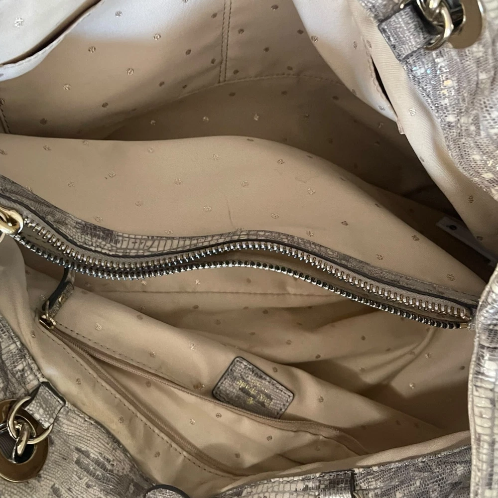 Brand: Kate Spade Color: Gray Size: Large Approximate Measurements:15”x10”x7”; 8.5” drop Material: Leather Closure:Magnetic Features: Chain strap Supple luxury leather Silver hardware Lined interior Three large interior pockets Condition: mild exterior wear from normal use. Lining has minimal dirt. Fully functional. No major flaws Si15