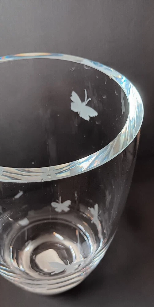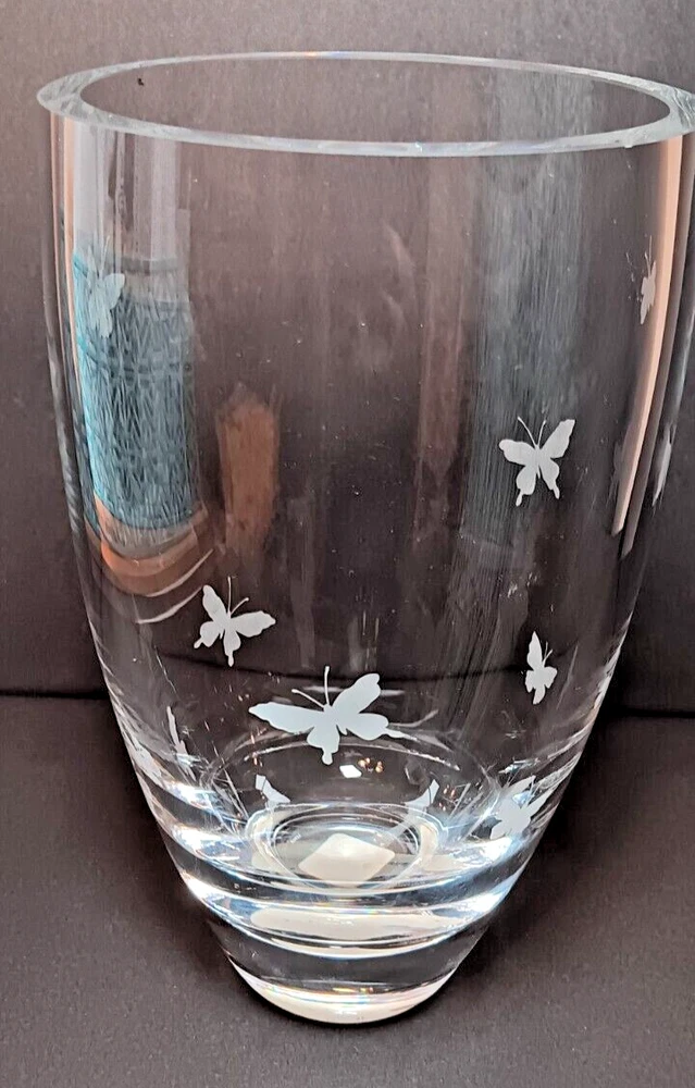 This beautiful Lenox Kate Spade flower bouquet vase measures 8.75" in height, 5" in diameter and the rim is .5" thick. There are two flea bites; please see all photographs as they are part of the description. It is heavy! Shipped with USPS Ground Mail.