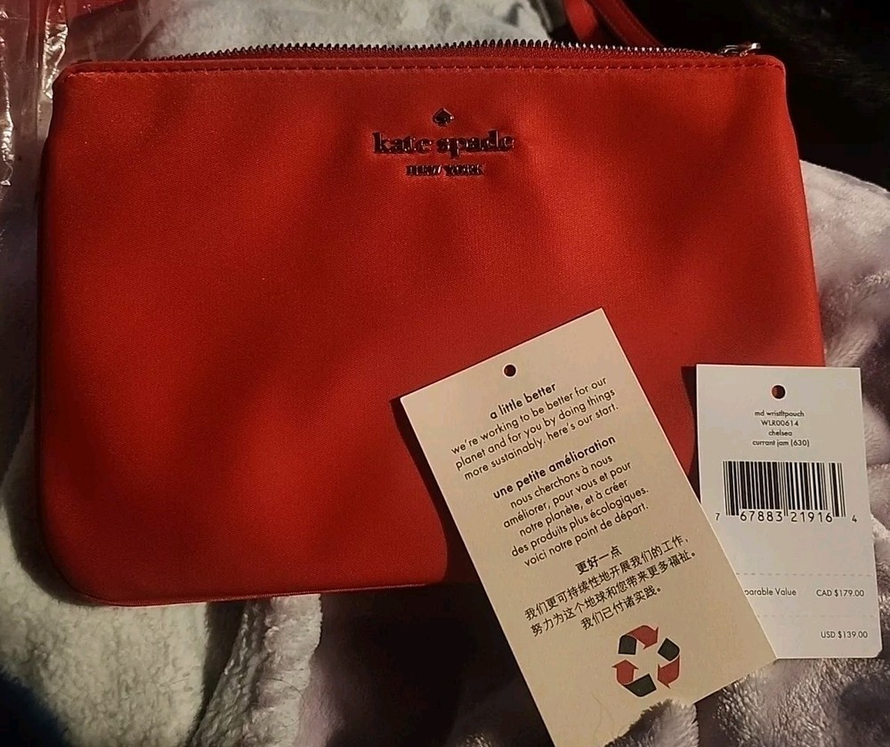 📌BRAND NEW WITH TAGS This is a brand new Kate Spade Medium Wristlet Pouch in the color Current Jam. It features a solid pattern and is made of nylon material. The wristlet has credit card features and accents such as a zip and logo. It is a designer wristlet for women and is perfect for those who love the Kate Spade brand.