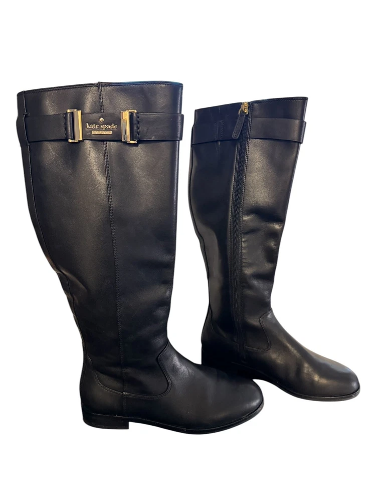 Kate Spade New York Women's Ronnie Equestrian Black Riding Knee High Boots 5.5