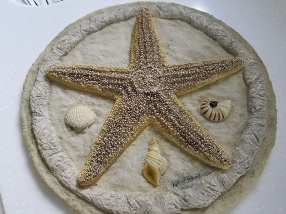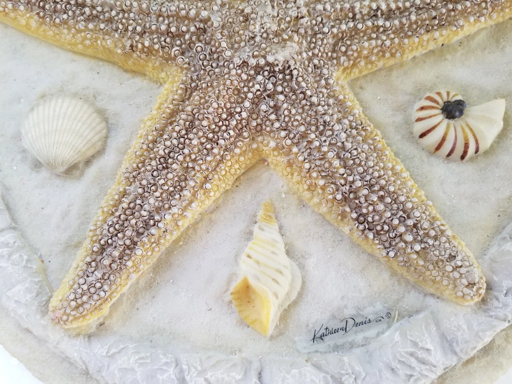 Kathleen Denis Waters Edge Seaside Stone Star Fish Wall Plaque. 12" x 12". Very Good Pre-owned Condition with no chips or cracks. Please View Photos.