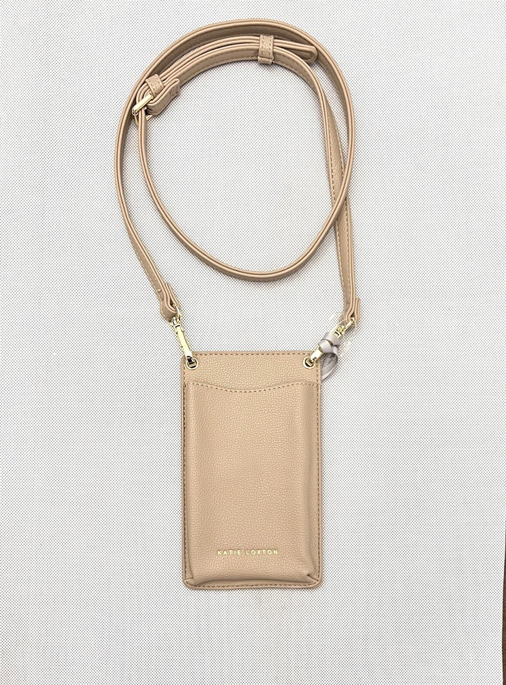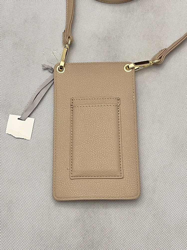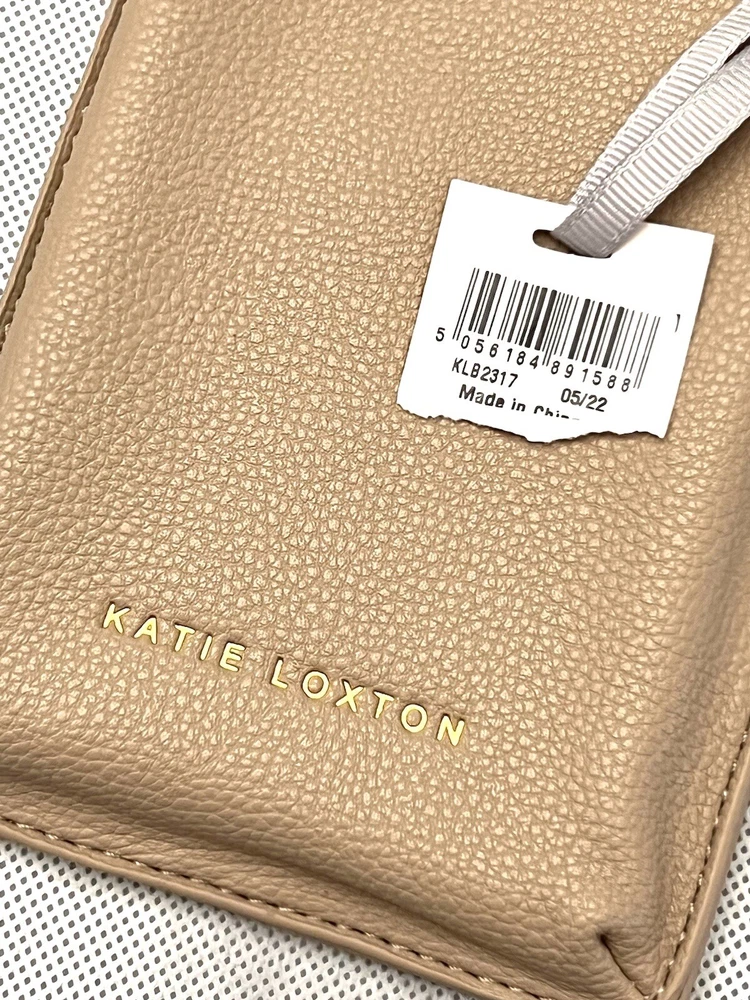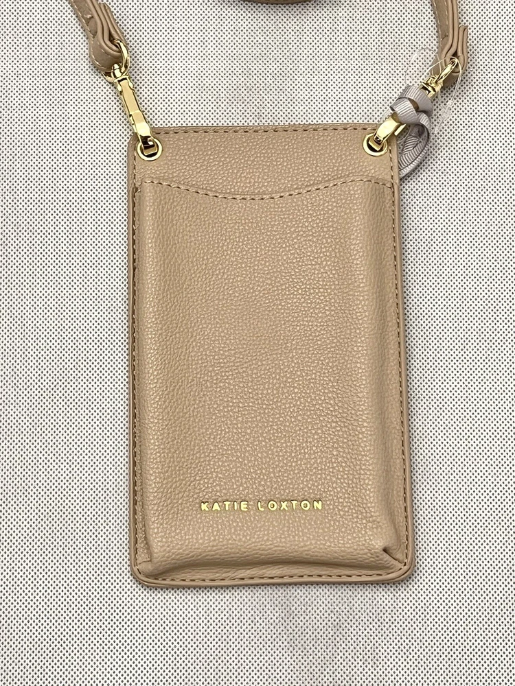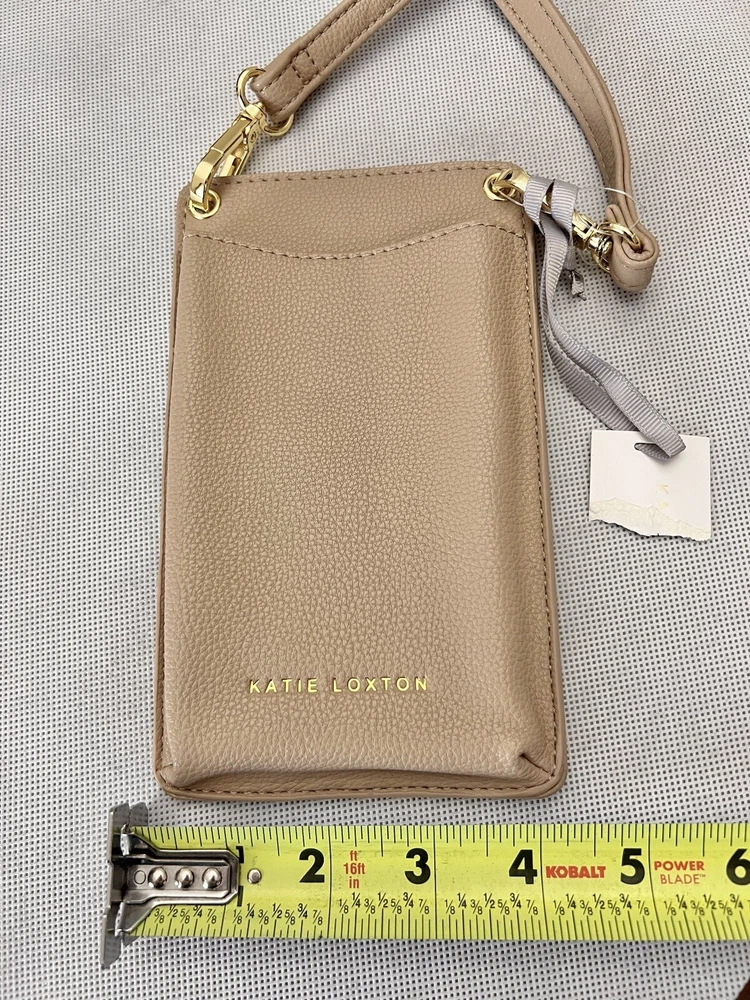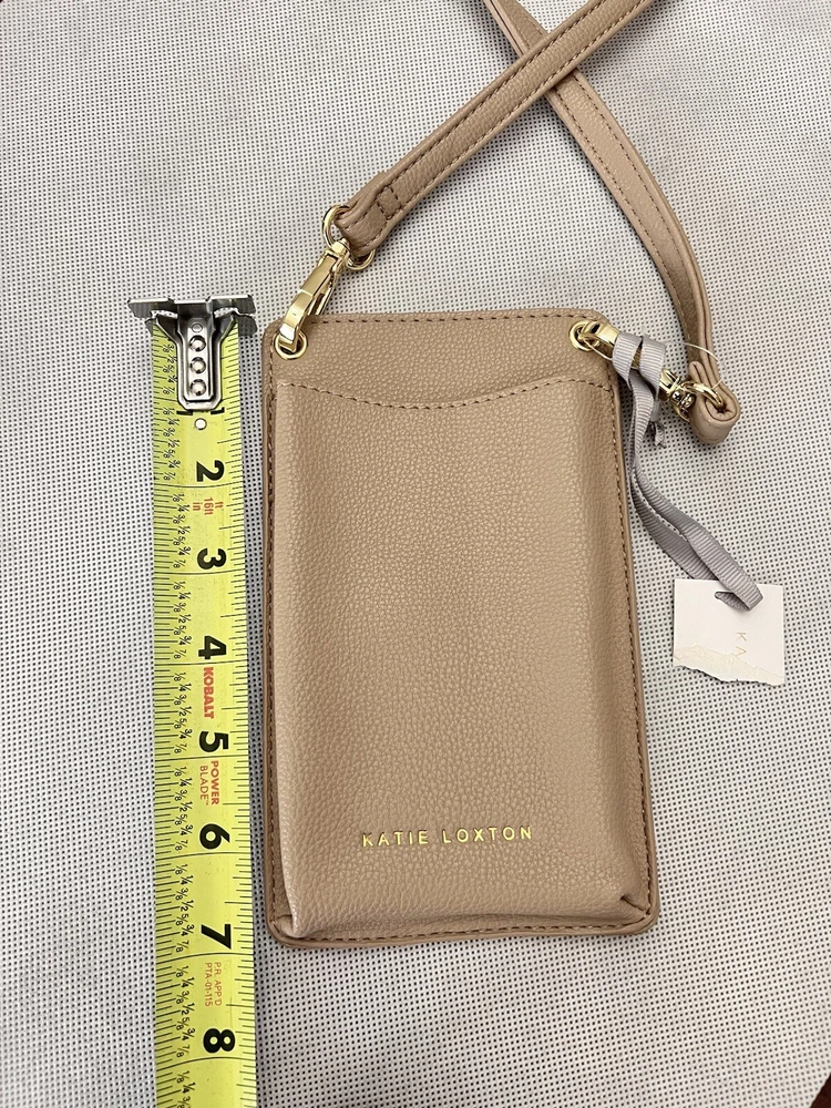 This Katie Loxton BEA Cell Phone Crossbody Bag is the perfect accessory for any occasion. The bag features a solid pattern with beige handle/strap color and gold hardware color. It is made of vegan leather with logo accents on the exterior, and has a small size which makes it ideal for travel, party/cocktail, casual, workwear, and business occasions. The bag has a crossbody style and is part of the Katie Loxton Accessories product line. It comes in a beige exterior color. Brand New With Tag! Thank you for stopping by!