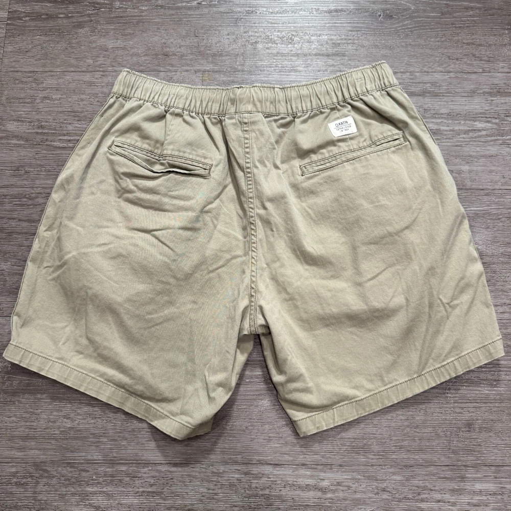 Fabric Type: Knit Size: XL Fit: Regular Waist Size: 34 in Color: Beige Size Type: Regular Occasion: Casual Pattern: Solid Brand: Katin Closure: Drawstring Features: Drawstring, Easy Care, Elastic Waist Material: Cotton Inseam: 7 in Theme: American, Beach, Outdoor, Preppy Style: Chino Front Type: Flat Front Department: Men Fabric Wash: Medium Country/Region of Manufacture: China
