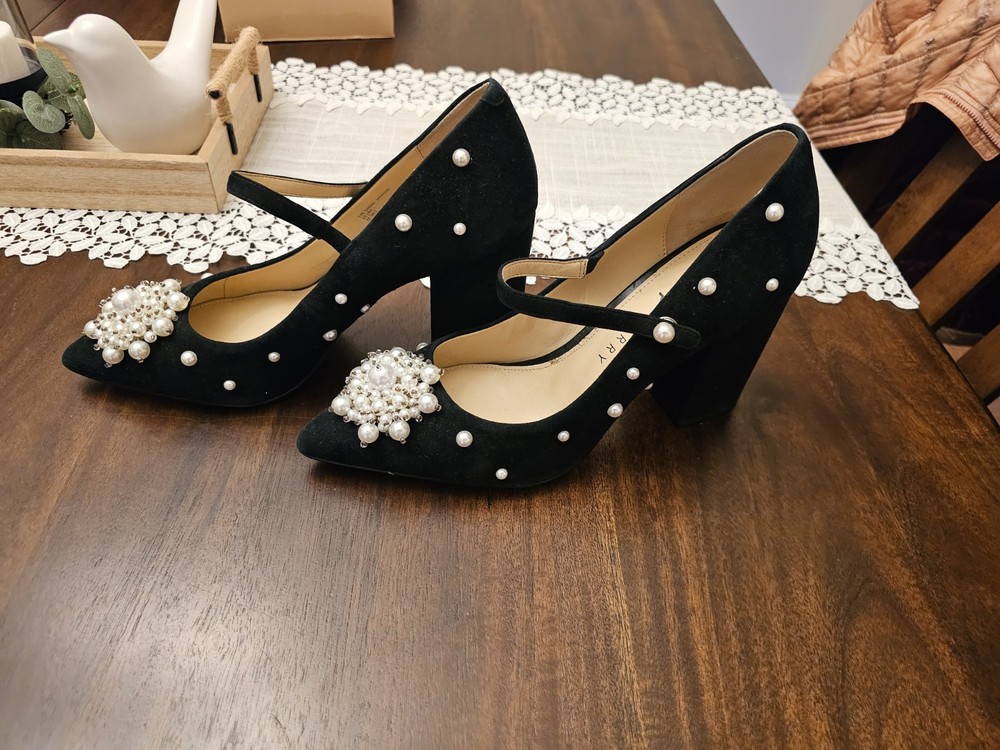 LC Lauren Conrad Women's Hydrangea Comfort High Heels Black Size:9.5 70PQ