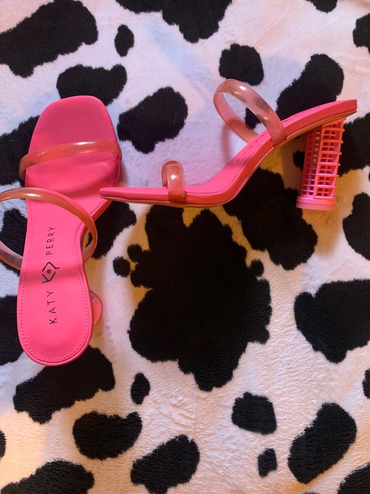 These pink heels by Katy Perry are absolutely adorable and surprisingly comfy! Perfect for a night out, they fit snug but still work for a small size 6. Barely worn, like new, and the price is a steal for such a stylish pair. Love the shiny finish—so fun and feminine! Get them before they’re gone!