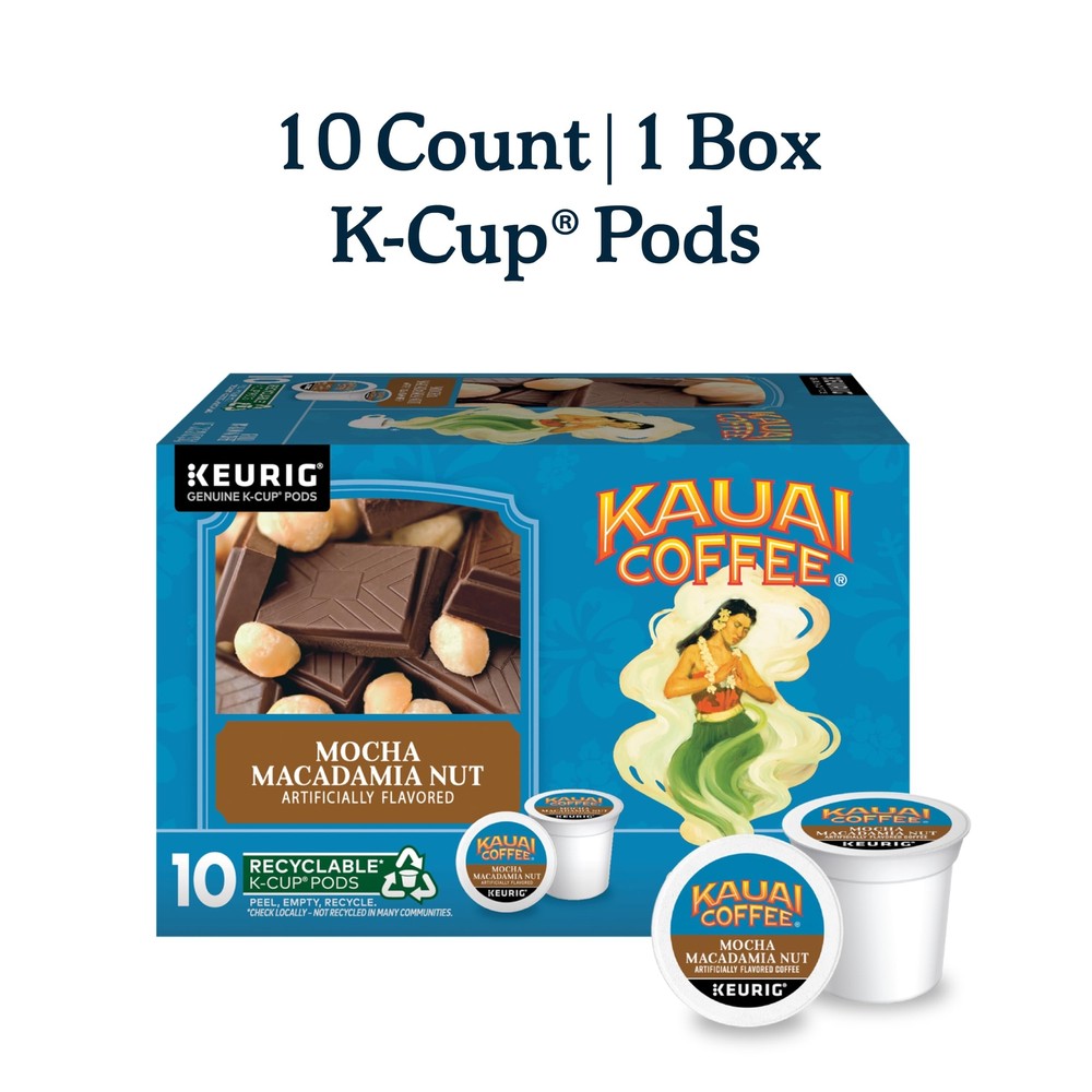 Keurig K-Cup Pods - Mocha Macadamia Nut Flavor - Premium Arabica (1 Pack of 10 Single-Serve Cups) PREMIUM ARABICA – Smooth and delicious MOCHA MACADAMIA NUT – Delivers a savory aroma, making it the perfect cup of coffee to drink, day or night. FOR COFFEE MAKERS - K-Cup pods are designed for use in K-Cup compatible single-cup brewing systems; 10 total pods. Our perforated dispenser box offers convenient access to your pods while on display. This product can be recycled* *Check locally. Not recycled in many communities. 10% HAWAIIAN HARVESTED COFFEE – Grown and harvested on the island of Kauai COMPANY ESTATE - Hawaii’s largest coffee estate is open year-round offering farm tours and coffee tastings One sip of our Kauai Mocha Macadamia Nut flavored coffee and you’ll know why we say Taste Paradise. One Cup at a time. Mocha Macadamia Nut coffee is a premium Arabica coffee, featuring a smooth, delicious flavor and amazing aroma. With its savory aroma, it is the perfect cup of coffee to drink, day or night. K-Cup pods are designed for use in compatible single-cup brewing systems. Company is Hawaii’s largest coffee grower, and the largest coffee grower in the U.S. We have about 3.75 million coffee trees growing on 3,100 acres – a true Hawaiian coffee estate! Shipping We offer FREE shipping on all orders! We ship within Three business days of payment, usually sooner. We use a selection of shipping services such as UPS, FedEx, USPS etc. We only ship to the lower 48 states, no APO/FPO addresses or PO Boxes allowed. Local pickups and combined shipping options are not provided at this time. Return You can return a product for up to 30 days from the date you purchased it. Any product you return must be in the same condition you received it and in the original packaging. Please keep the receipt. Payment We accept payment by any of the following methods: PayPal Please pay as soon as possible after winning an auction, as that will allow us to post your item to you sooner! Feedback Customer satisfaction is very important to us. If you have any problem with your order, please contact us and we will do our best to make you satisfied. Contact Us If you have any queries, please contact us via ebay. We usually respond within 24 hours on weekdays. Please visit our eBay store to check out other items for sale! Thank you for shopping at our store.