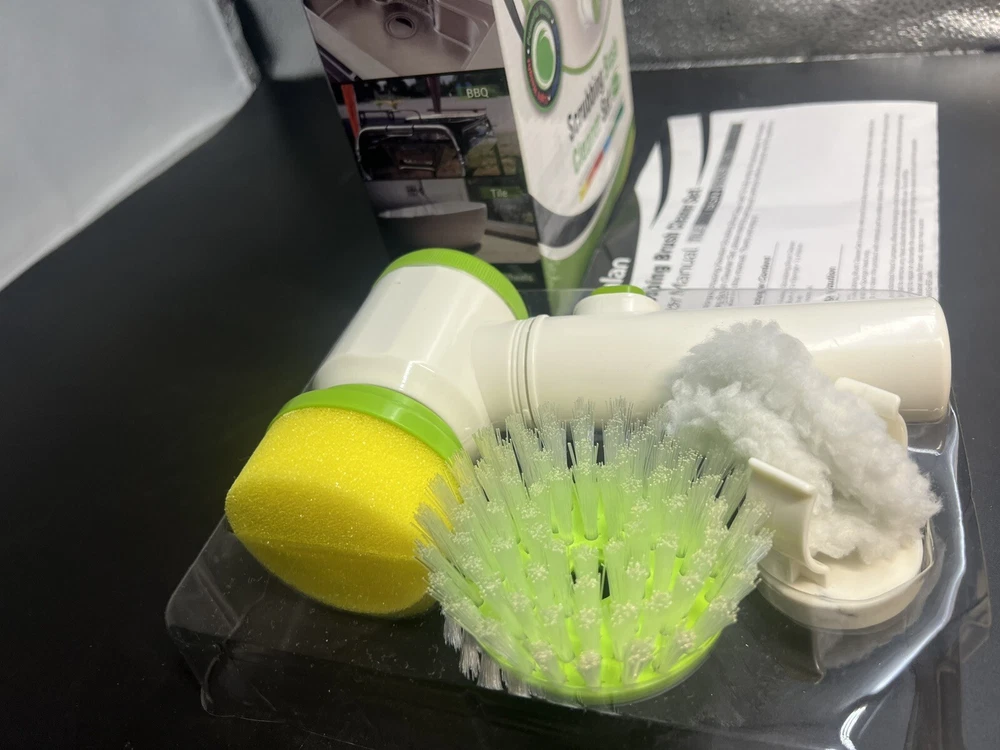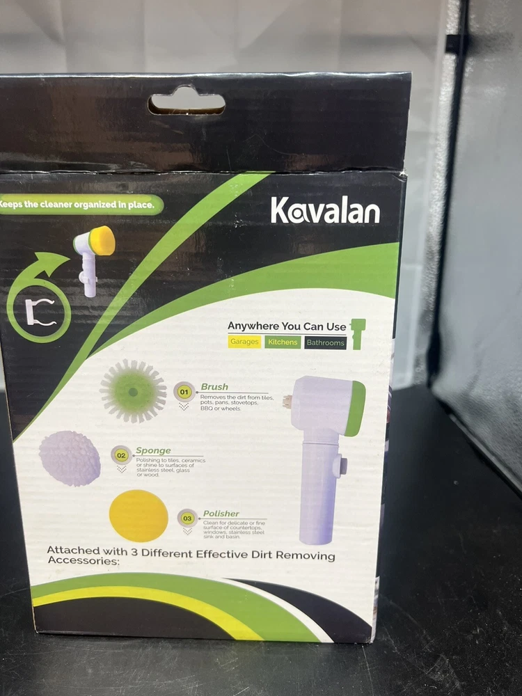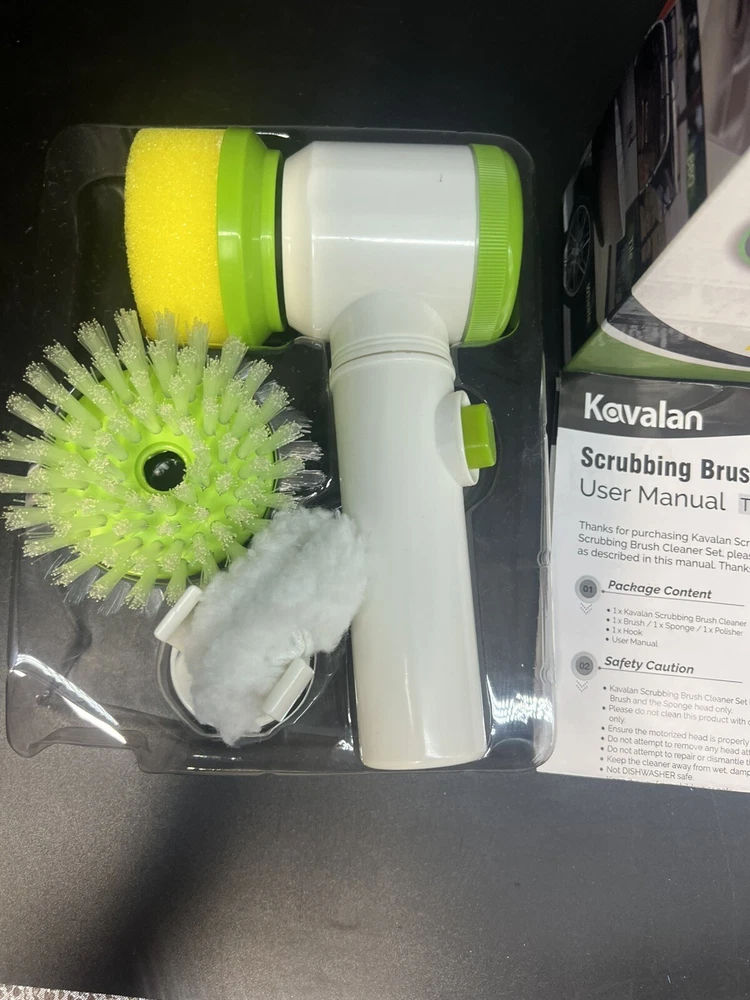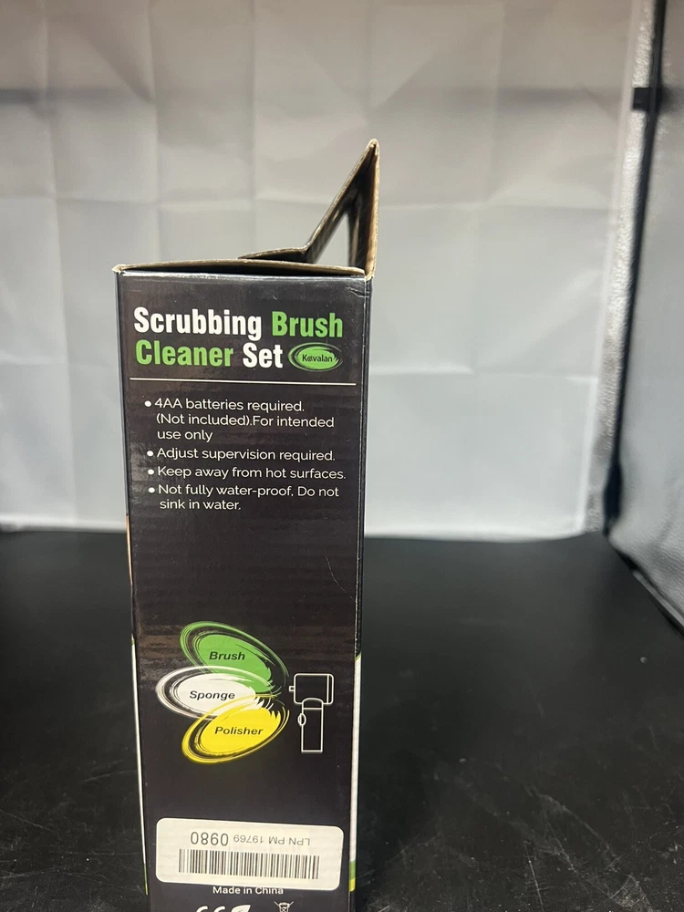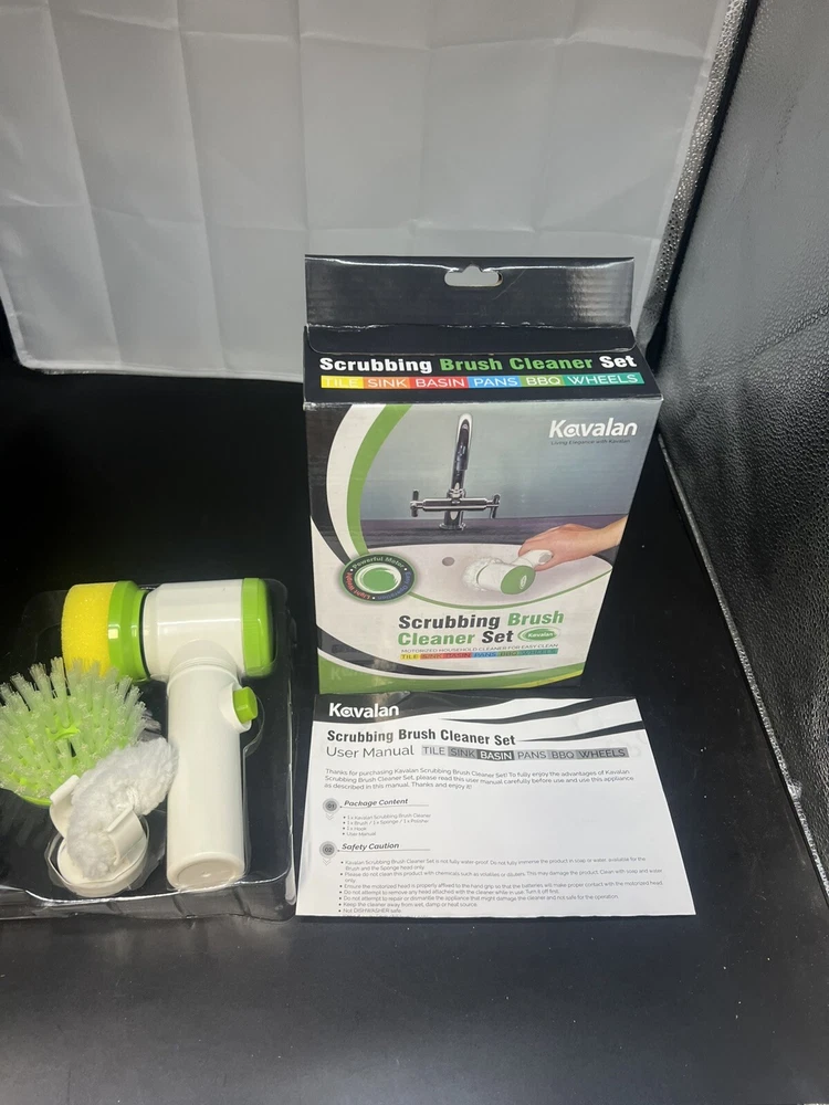 The "Kavalan Scrubbing Brush Cleaner Set" is a cleaning product designed for household use. Made by the brand Kavalan, this set includes a scrub brush specifically for scrubbing tasks. The scrub brush is likely to be durable and effective in tackling tough stains and dirt, making cleaning tasks easier and more efficient. Perfect for various cleaning needs around the home, this set offers a reliable solution for those looking to maintain a clean and tidy living space. Please ask any questions. OBO. Thank you. NEEDS 4 AA Batteries, not included.
