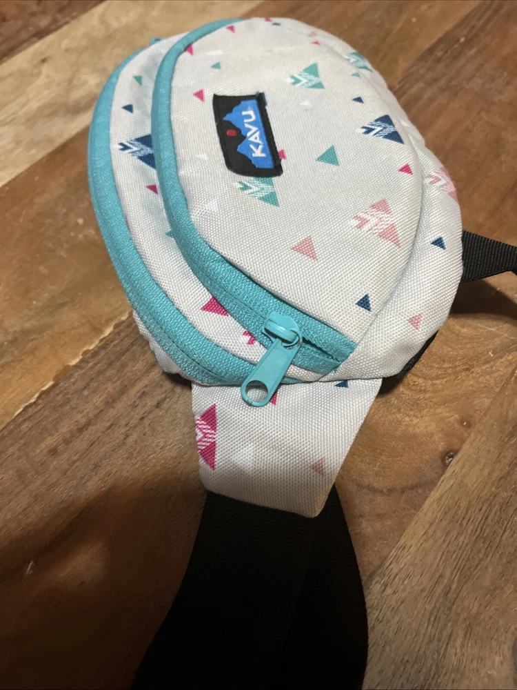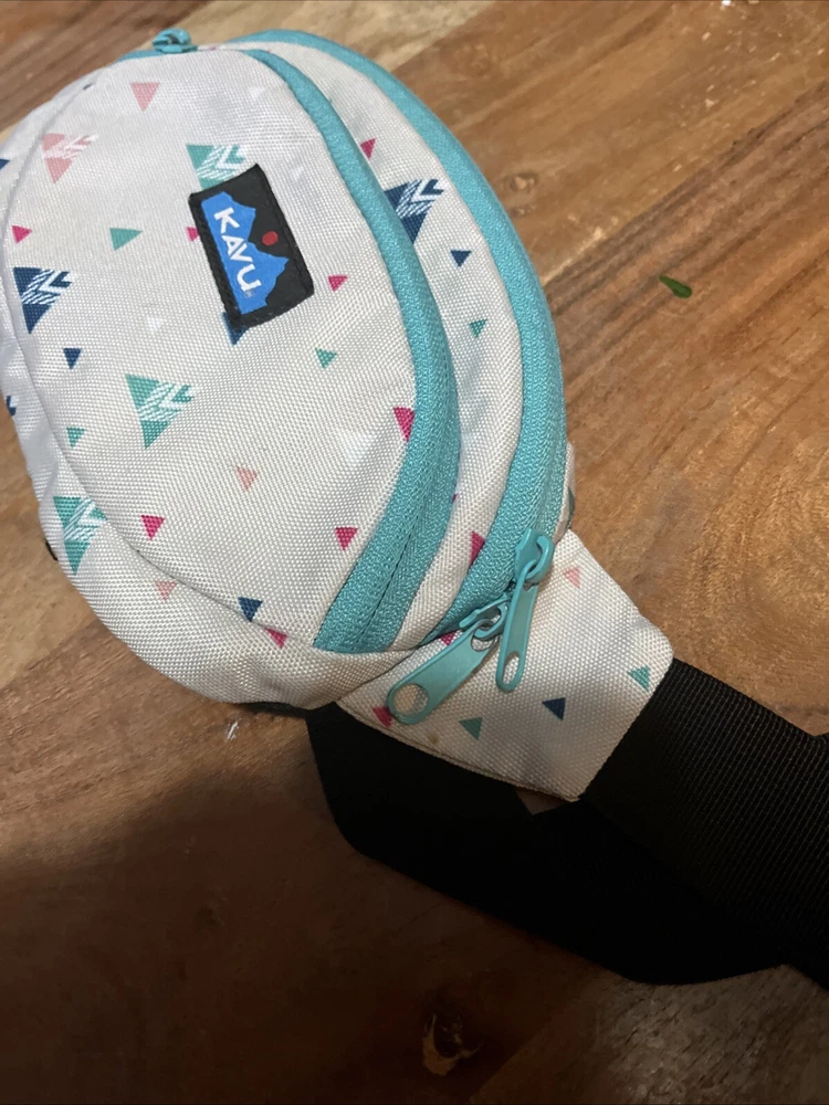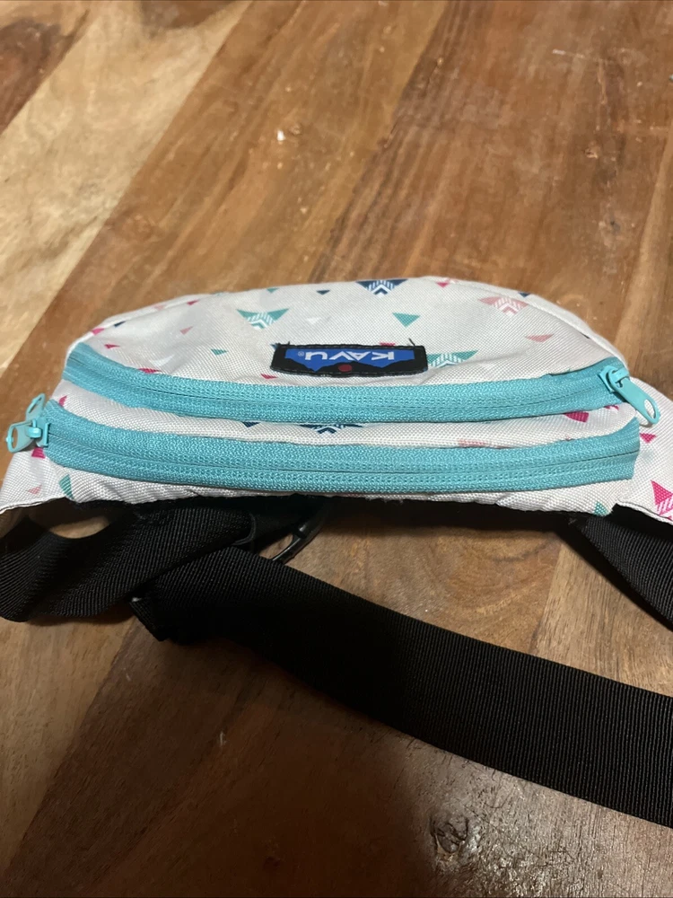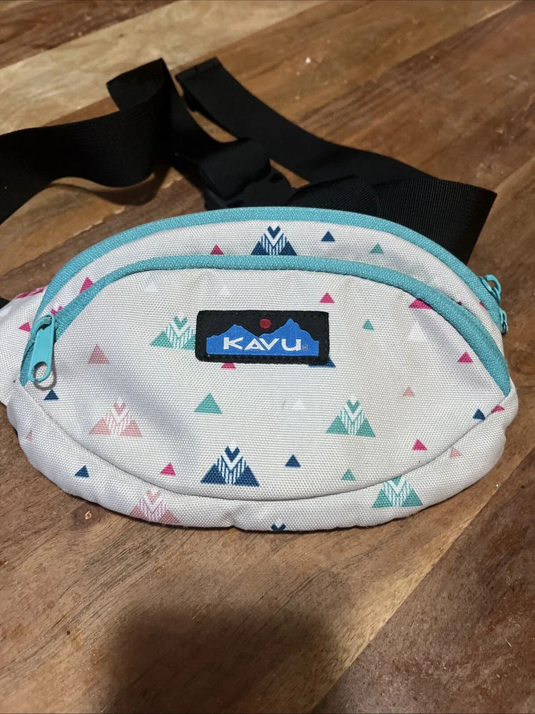 Sleek and stylish, the Kavu Spectator waist pack is a medium-sized fanny bag that offers both fashion and functionality for everyday use. Featuring an adjustable nylon strap for a comfortable fit, this belt bag boasts a vibrant Icy Terrain pattern that stands out in a crowd. The durable 600 Denier polyester exterior is complemented by a mint green nylon lining, creating a fresh and eye-catching color contrast. Ideal for casual outings, the Kavu Spectator has a single outside pocket with a zipper closure, keeping essentials secure and within reach. Measuring 8 inches in width, 5 inches in height, and 1 inch in depth, this fanny pack is perfectly sized for your daily essentials. Whether you're exploring the city or enjoying a day at the beach, this belt bag from KAVU's esteemed product line is a reliable accessory for any adventure.