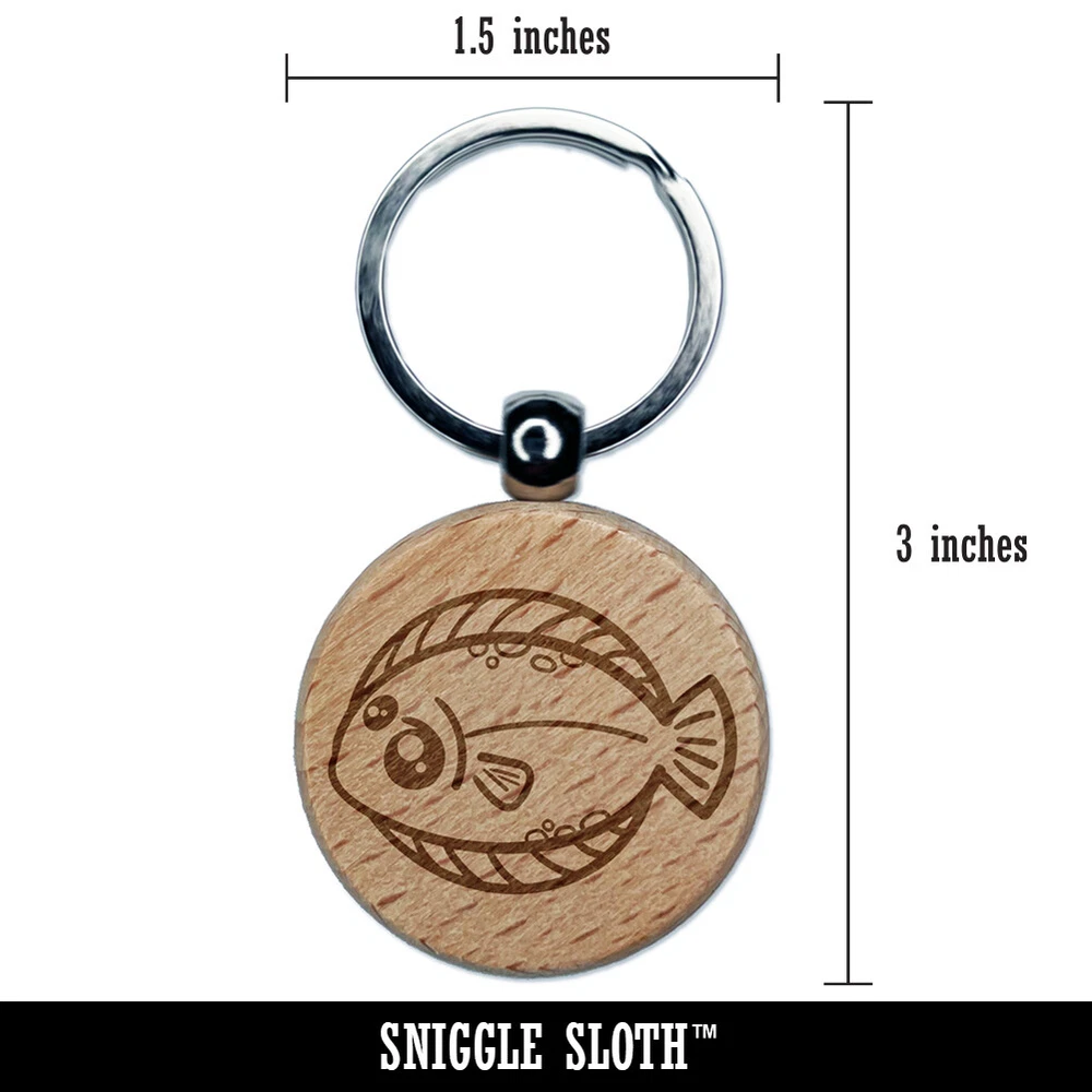Kawaii Dab Fish Engraved Wood Round Keychain Tag Charm