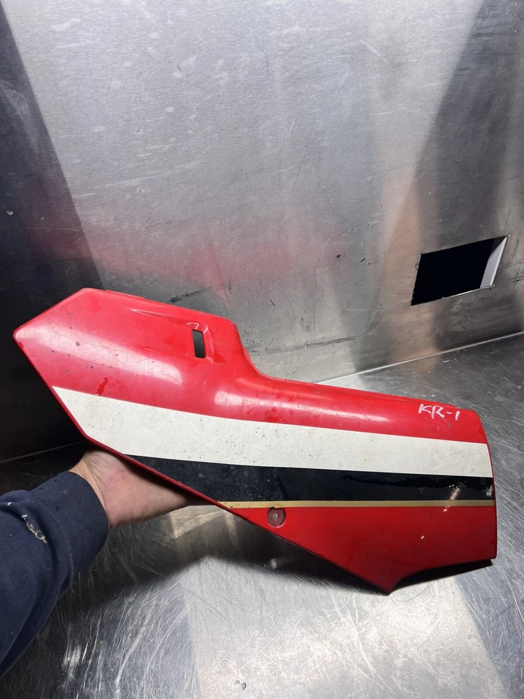Kawasaki KR1s side cover 36001-1380. Super hard to get this ones in good shape too has one broken mount tab as seen otherwise good Fixed price postage in Australia. Overseas postage at cost. Pictures form fitment and condition description. Please note i will combine shipping, ebay combined shipping setup isnt great. Message me after your multiple item purchase so i can refund the difference. I dont ship through the ebay app so this is the easiest way for me to sort it out. PLEASE NOTE EVERYTHING I HAVE IS LISTED ON EBAY. I can only give so much fitment advice on a bike ive never seen, please reference your part book for fitment advice.