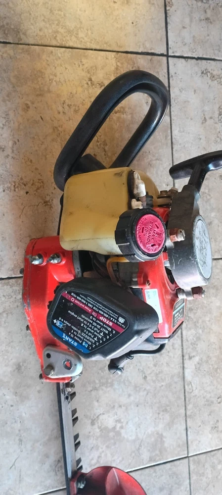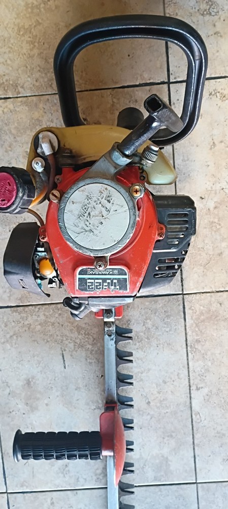 Kawasaki TF 22 Hedge trimmer This item is untested and comes from a storage auction. The blade is missing two screws that attach it together and shows some oxidation. When pulling, it sounds like there is compression in the engine. Sold as is; therefore, it is a parts unit.