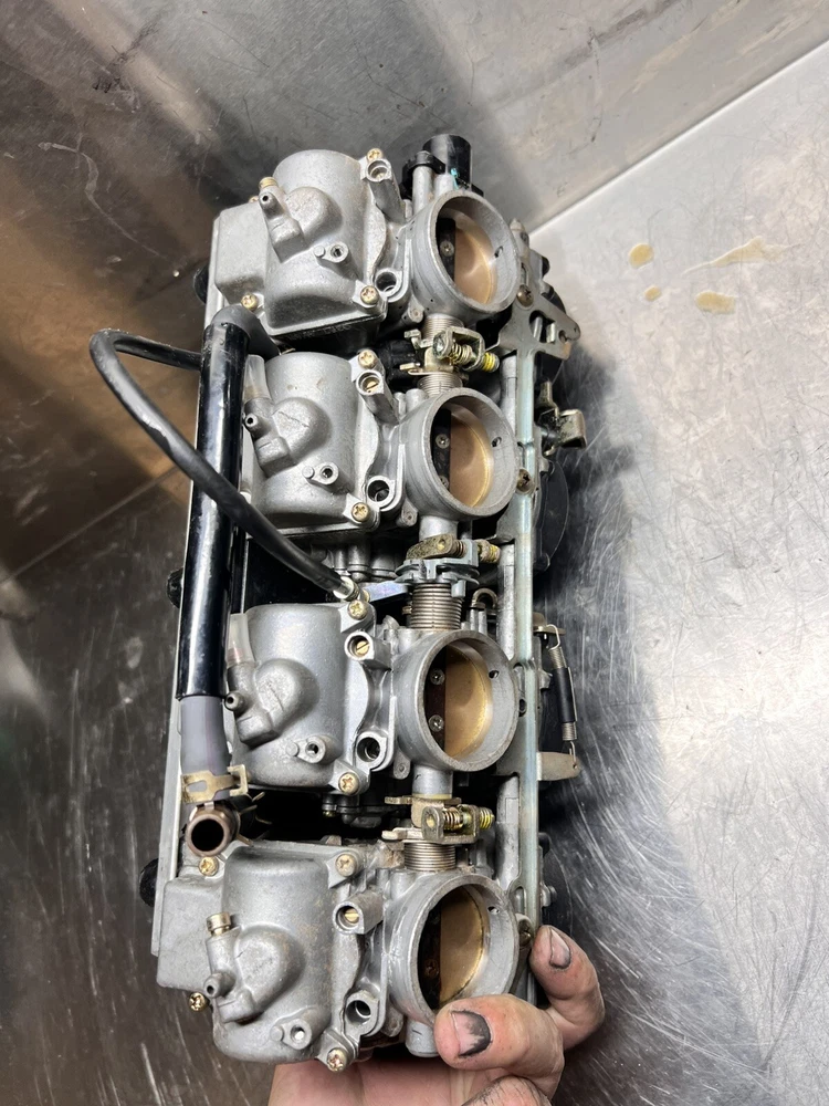 Zx9 carb setup as shown been sitting a long time will need a kit put through them and a going over . Fixed price postage in Australia. Overseas postage at cost. Pictures form fitment and condition description. Please note i will combine shipping, ebay combined shipping setup isnt great. Message me after your multiple item purchase so i can refund the difference. I dont ship through the ebay app so this is the easiest way for me to sort it out. PLEASE NOTE EVERYTHING I HAVE IS LISTED ON EBAY. I can only give so much fitment advice on a bike ive never seen, please reference your part book for fitment advice.