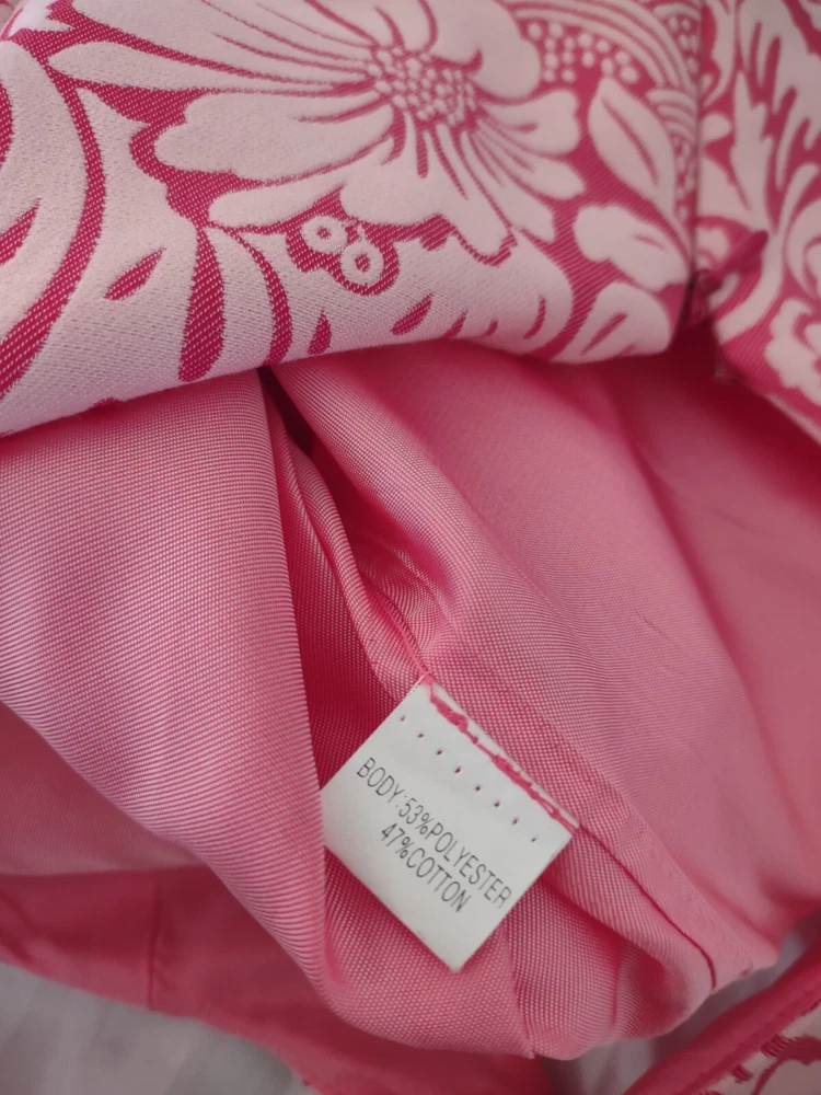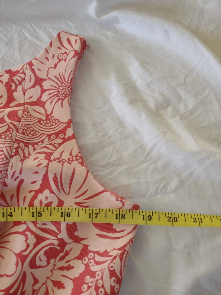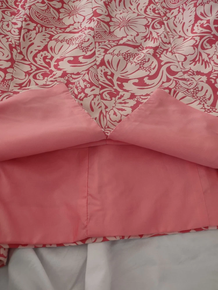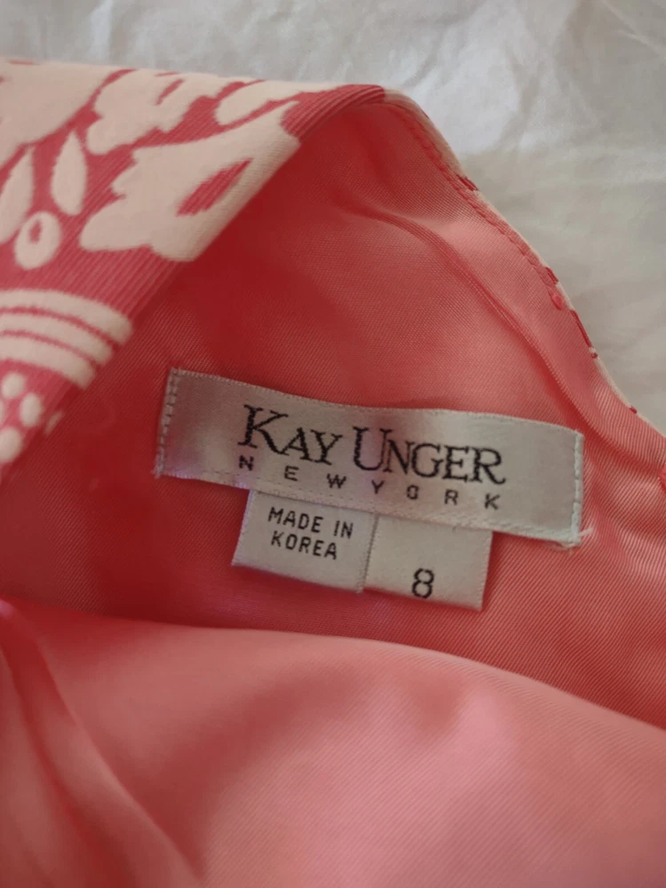 Kay Unger Dress Womens Size 8 Sleeveless Brocade Pink Sheath Knee Length Zip closure in the back Scalloped fun hem Fully lined Measurements in pics are pit to pit and full length Excellent pre-owned condition