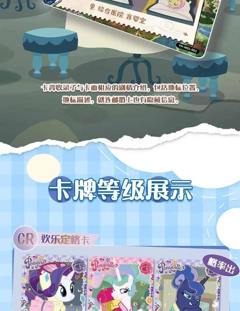 Discription: Product Name: My Little Pony Friendship Trading Cards Model: MLP-YH02-QY001 Product specifications: 5 sheets/pack Main material: Paper
