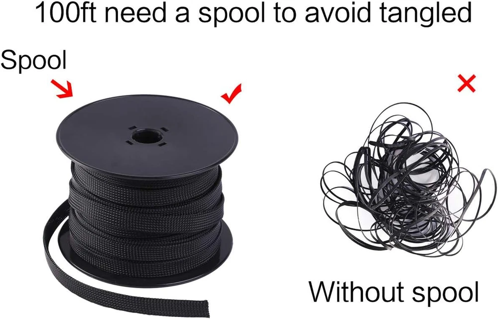 This expandable braided cable sleeve is a game-changer for organizing messy wires! It's super flexible, easy to cut to size, and gives a clean, professional look to audio, automotive, or home setups. The PET material feels durable yet lightweight, and the black color blends seamlessly. No fraying or annoying snags during installation—just smooth, hassle-free cable management. Perfect for DIY projects, and 100ft gives plenty to work with. Highly recommend for anyone tired of tangled cords!