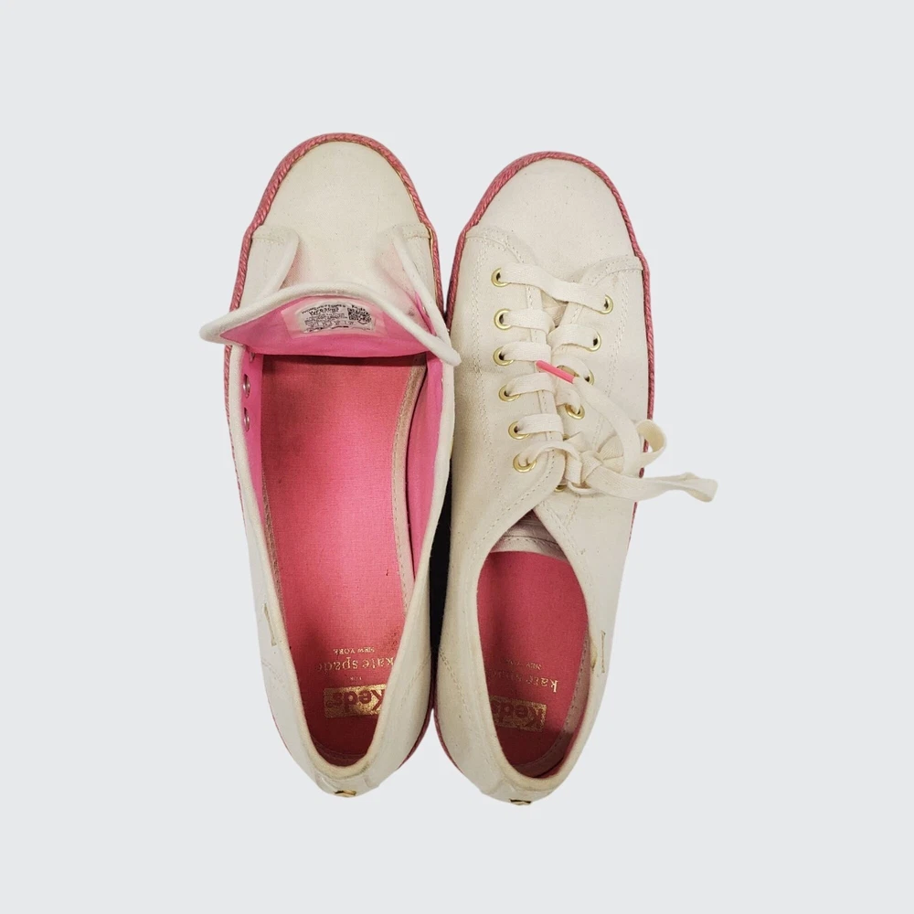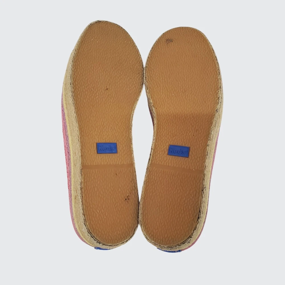 The Keds Kate Spades New York Neon Raffia Platform Sneaker in a women's size 10 features a unique designer collaboration between Keds and Kate Spade New York. This sneaker is characterized by its pink canvas upper material with a neon raffia platform sole, offering a colorful and stylish look. The sneaker is designed for comfort, featuring cushioning and breathability, making it an attractive and practical choice for those looking for a fashionable athletic shoe. #keds #kedskatespade #katespade #colorfulkeds